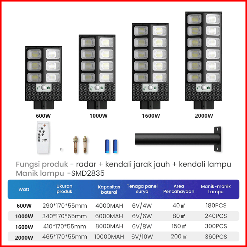 Ookas Lampu Jalan 2000w Tenaga Surya Led Sorot Sensor Light Outdoor Remote Solar 1600w Buy1get1free