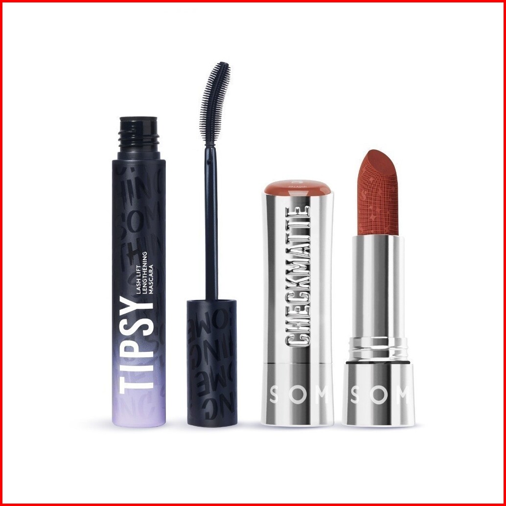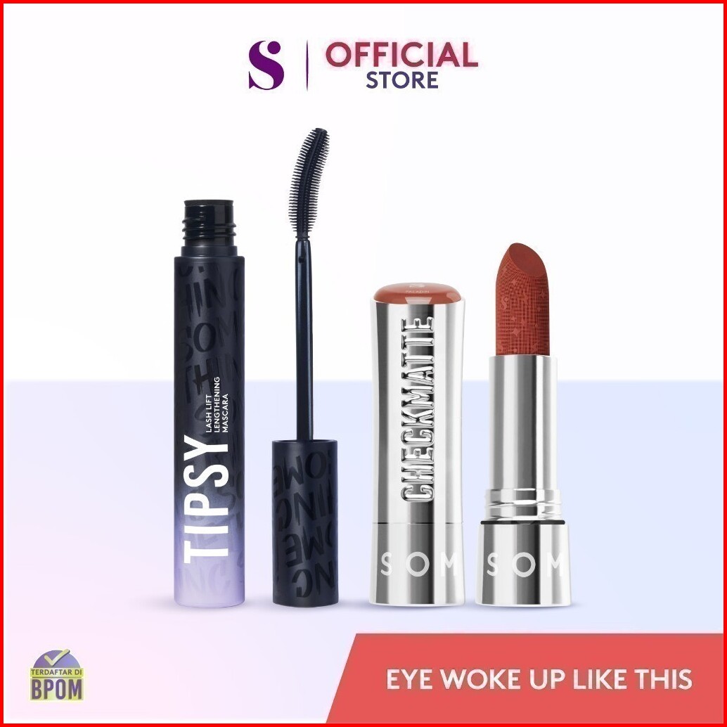 Somethinc 2 Pcs Eye Woke Up Like This Tipsy Lash Lift Lengthening Mascara X Checkmatte Transferproof Lipstick