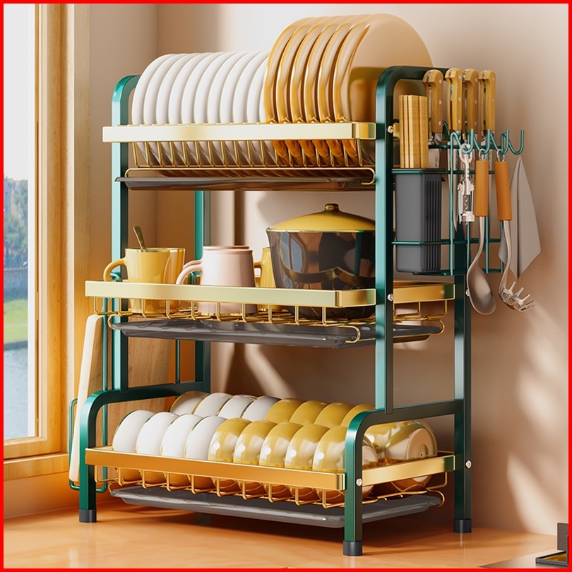 Rak Dapur Rak Piring Rak Serbaguna Rak Dish Drainer Dengan Aksesoris
