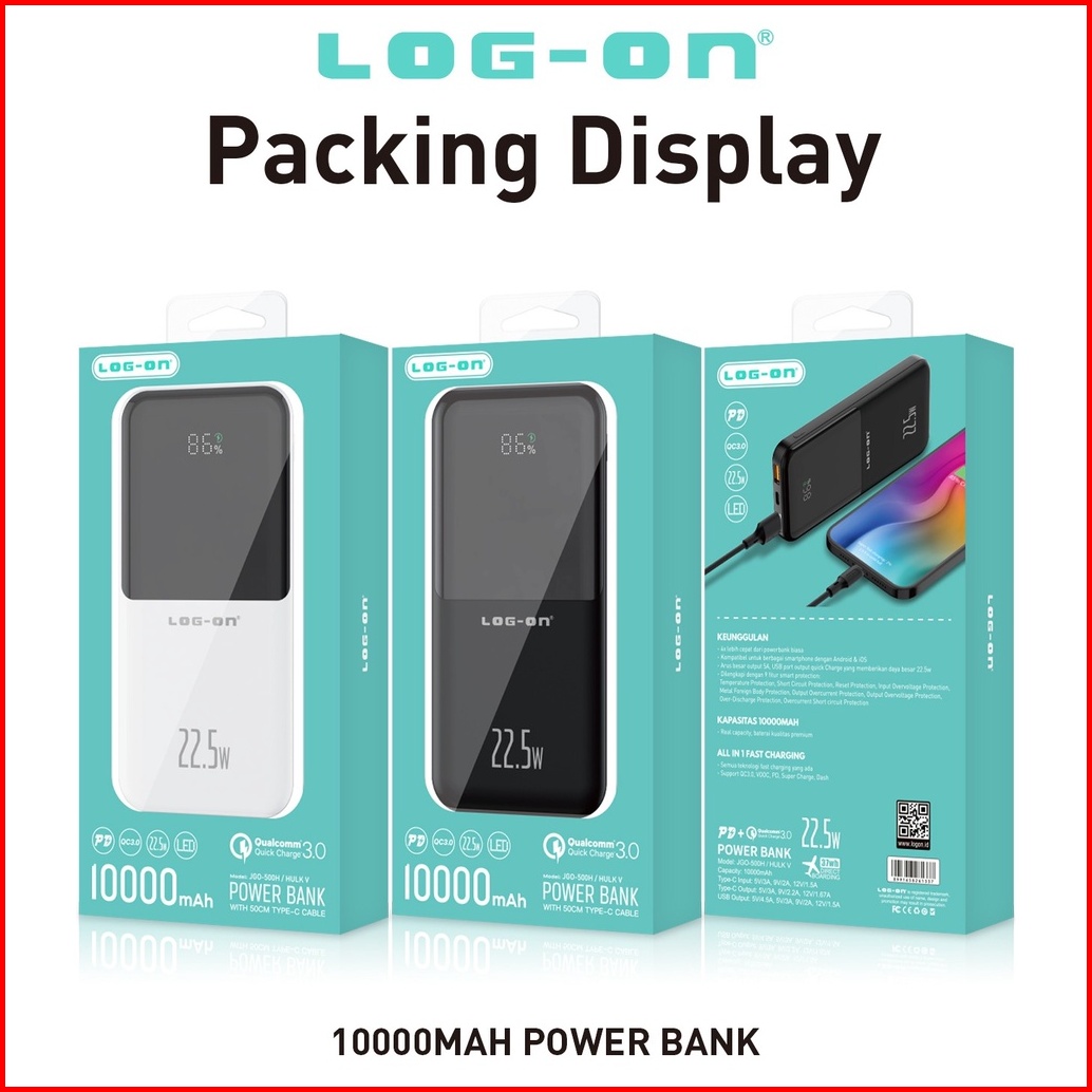 Log On Powerbank Hulk V 22.5w 10.000mah Jgo-500h Fast Charging Included Type C Cable