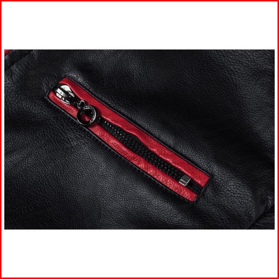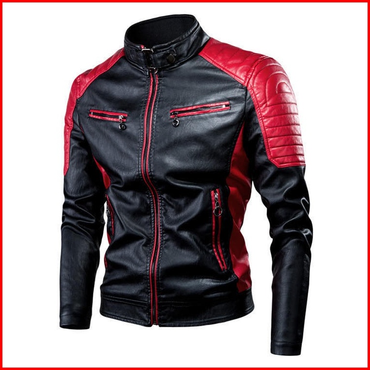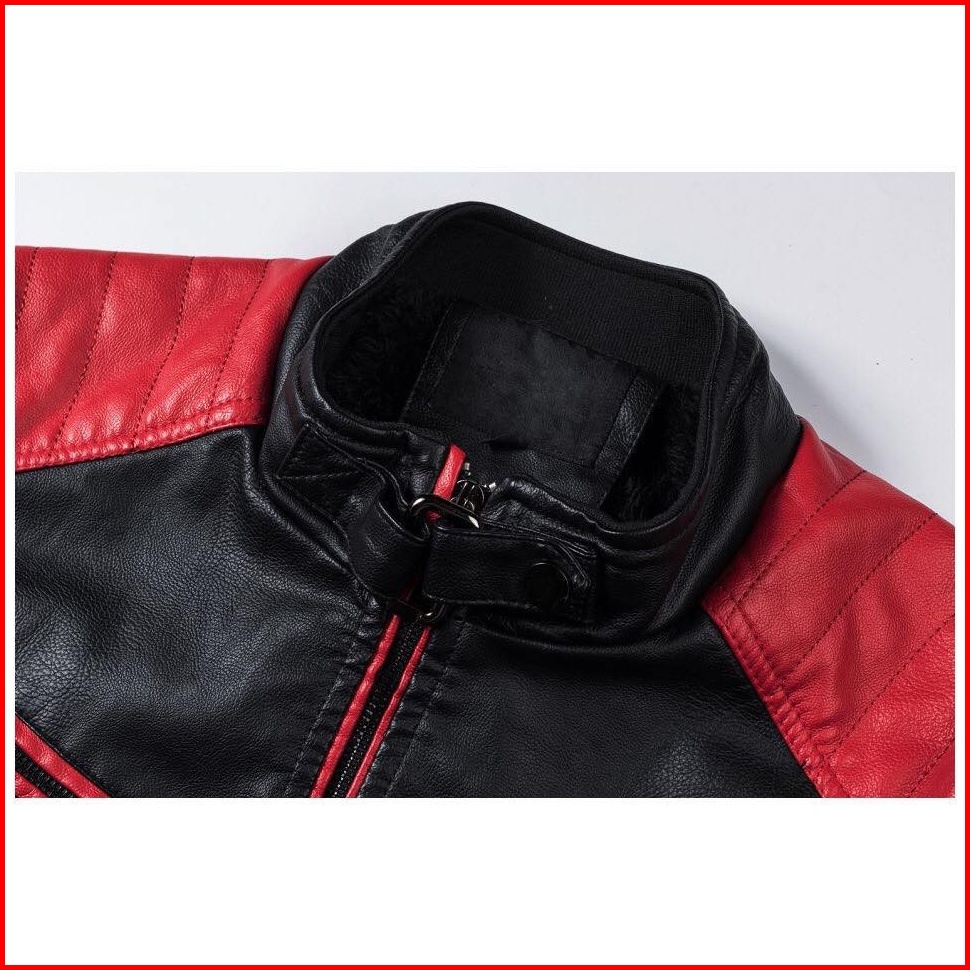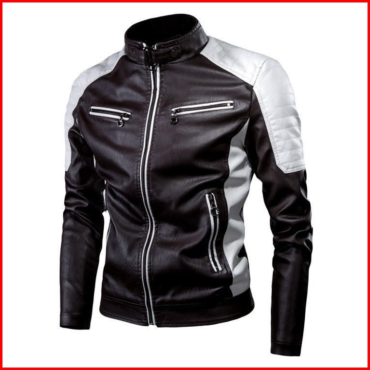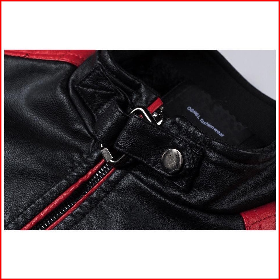 Jaket Kulit Motor Pria Tahan Air Waterproof Tahan Angin Windproof Bahan Semi Kulit Warna Hitam Putih Dan Merah Hitam Uku
