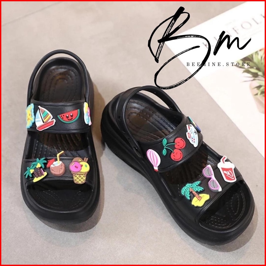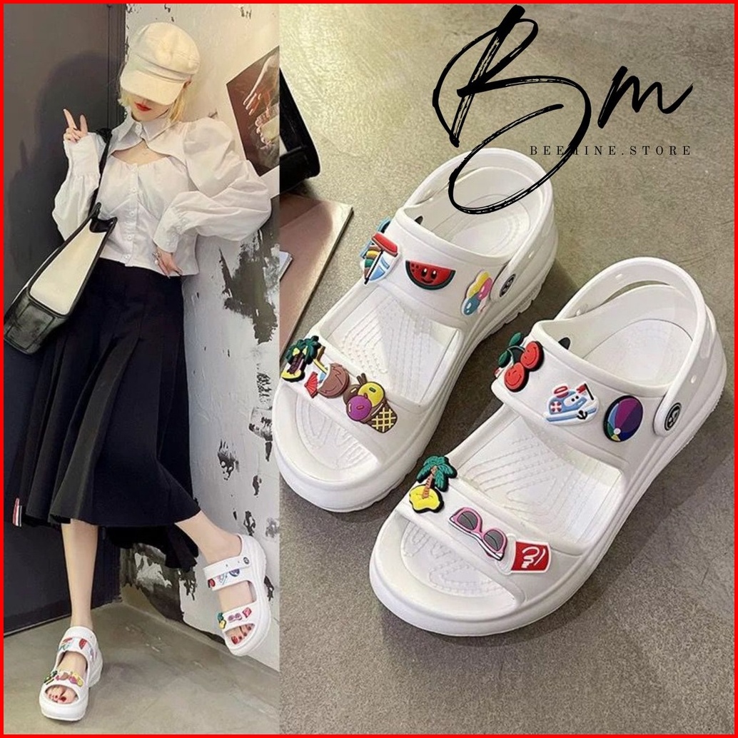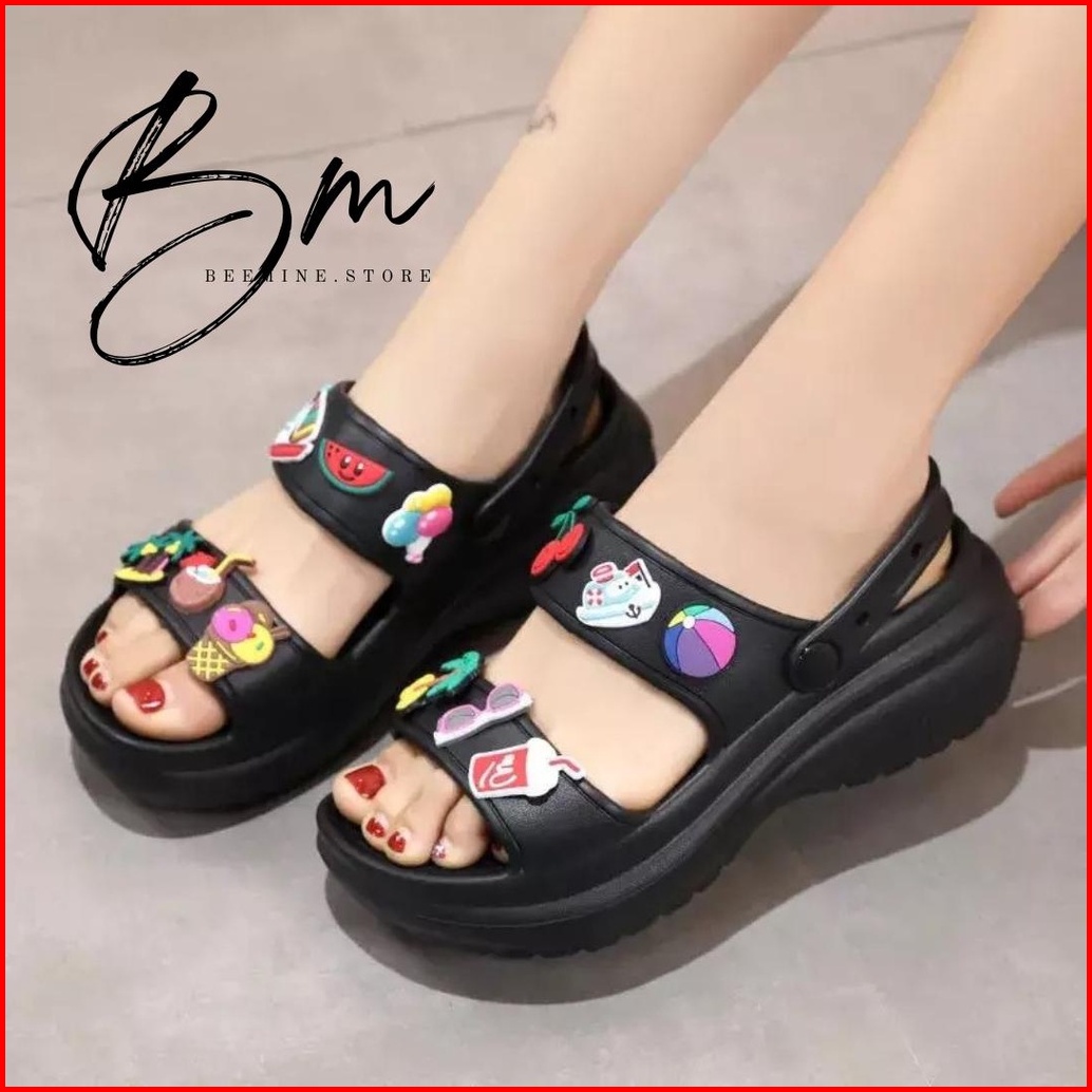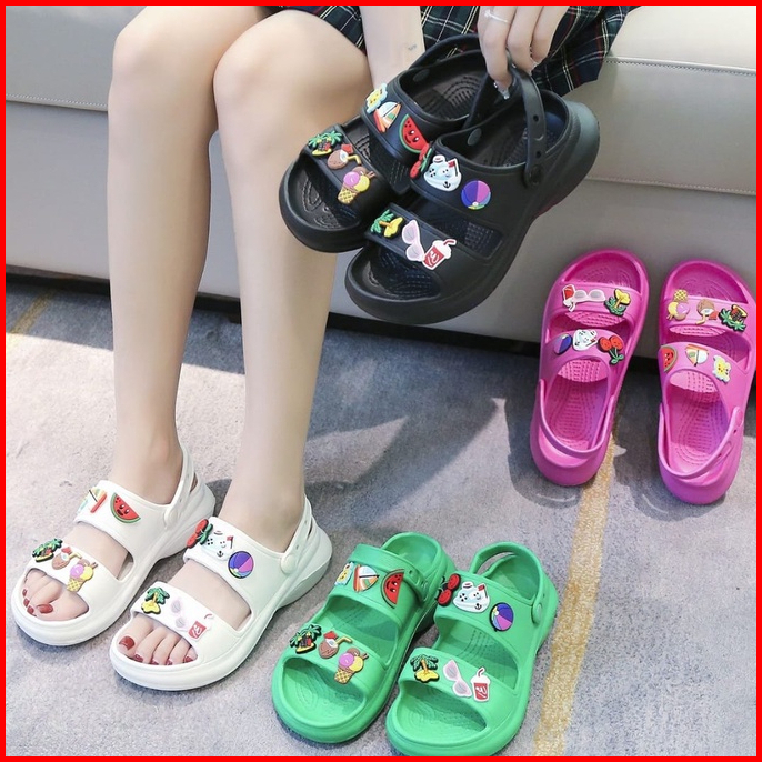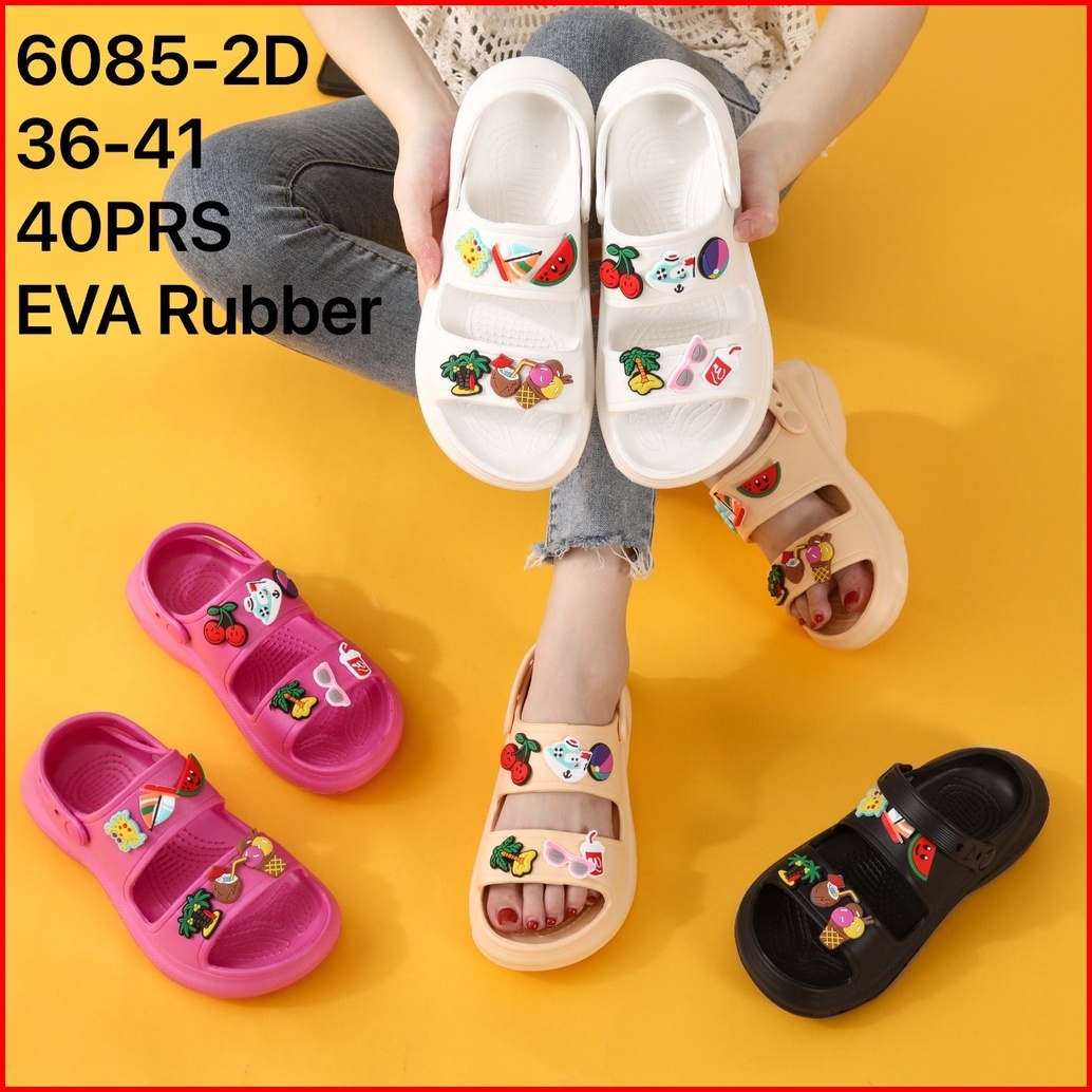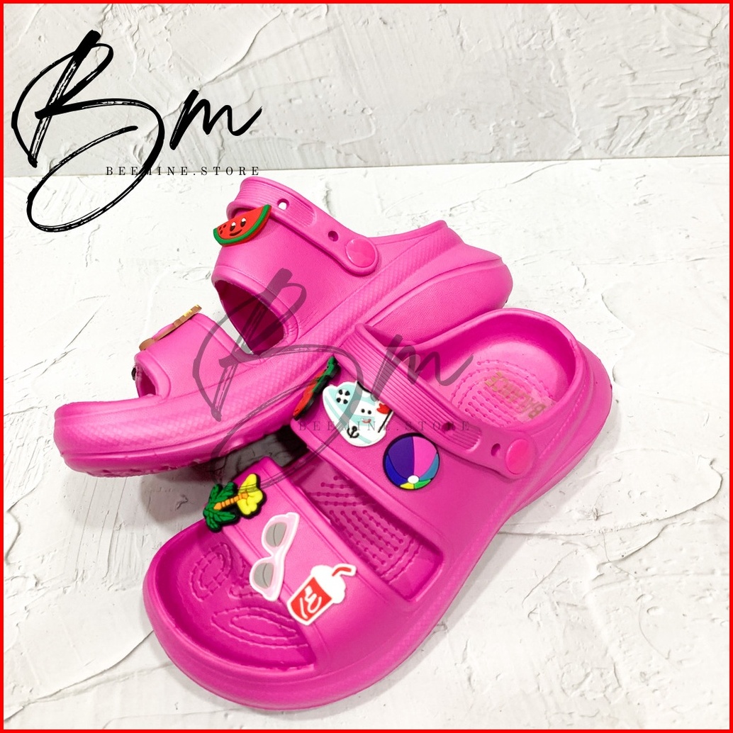 Sandal Eva Rubber Tali Belakang Platform Tebal Import Dengan Jibbitz 6085-2