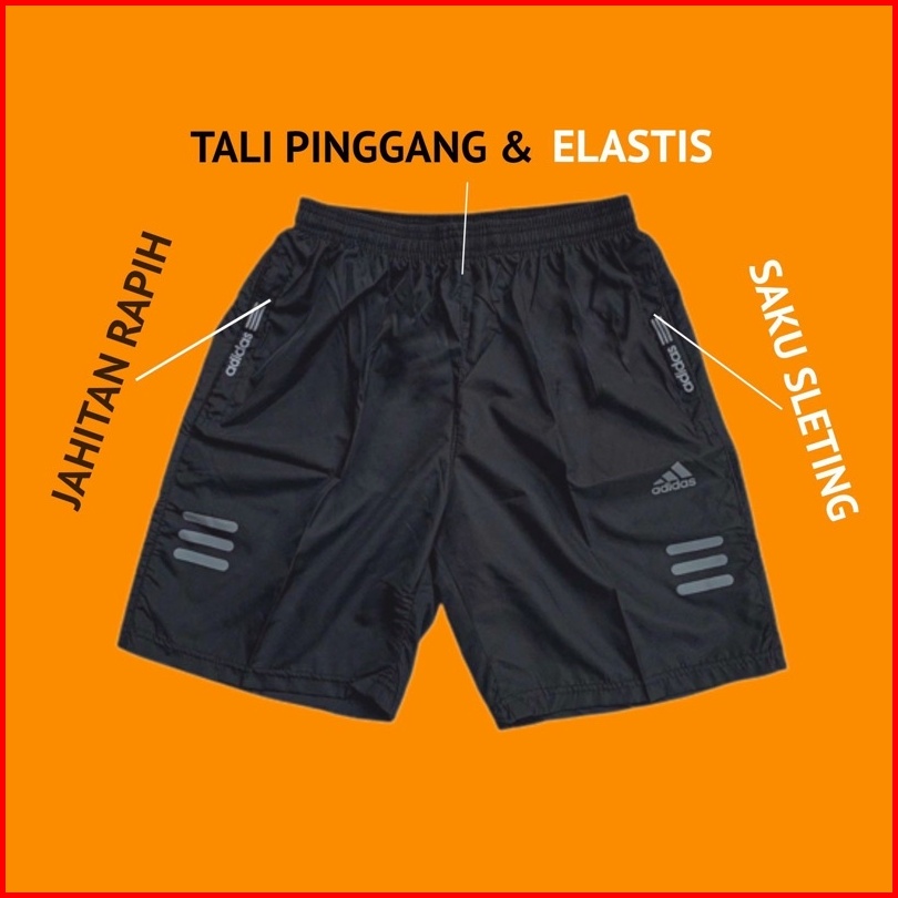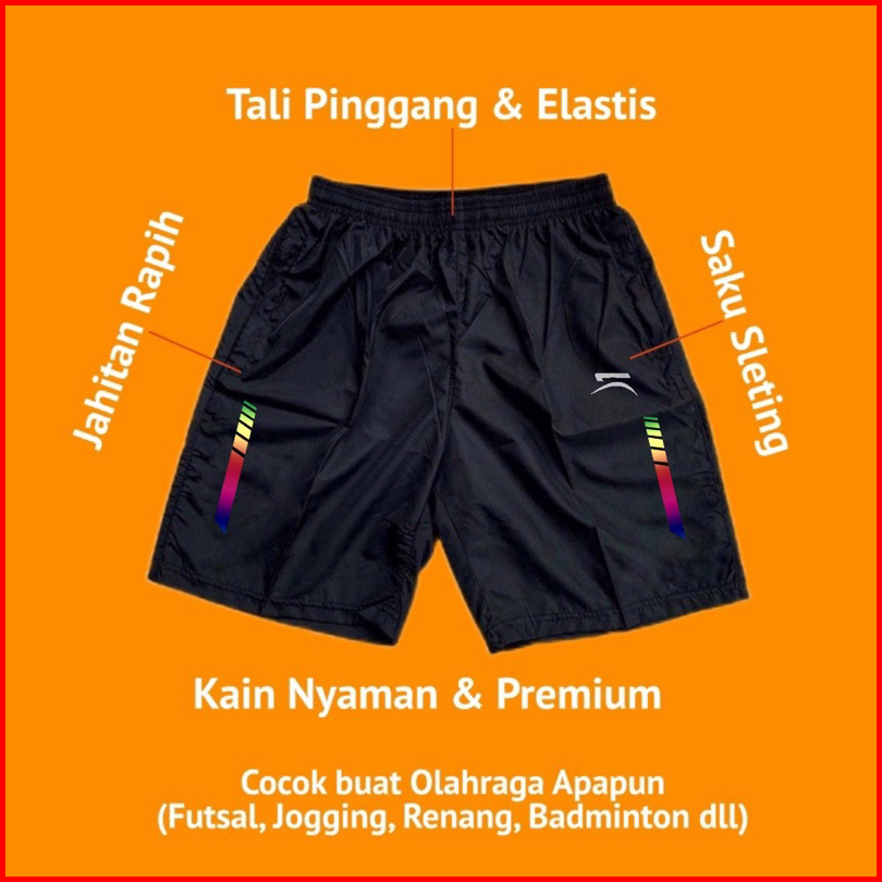 Celana Pendek Parasut Saku Resleting Pria Wanita Running Gym Sport Kolor Volly Futsal Bulu Tangkis Celana Pendek Parasut