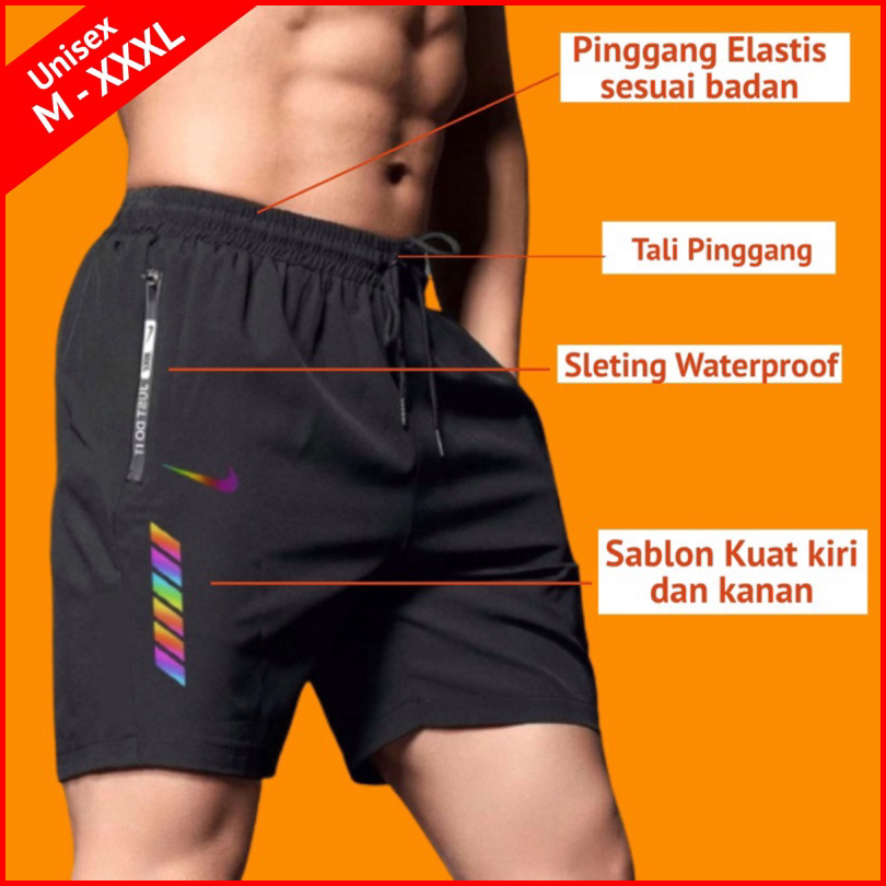 Celana Pendek Olahraga Parasut Micro Import Saku Resleting Celana Pendek Parasut Olahraga Saku Resleting Pria Wanita Run