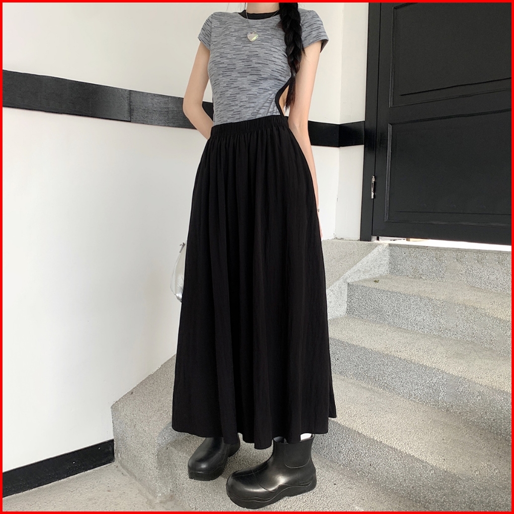 Rok Warna Polos Korea Skirt Panjang Polos Rok Wanita Korea Rok Midi A-line Pinggang Elastis Rok 7 8