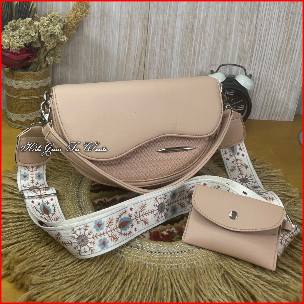 Tas Selempang Wanita Halfmoon 2 Tali Free Dompet Lisban Premium