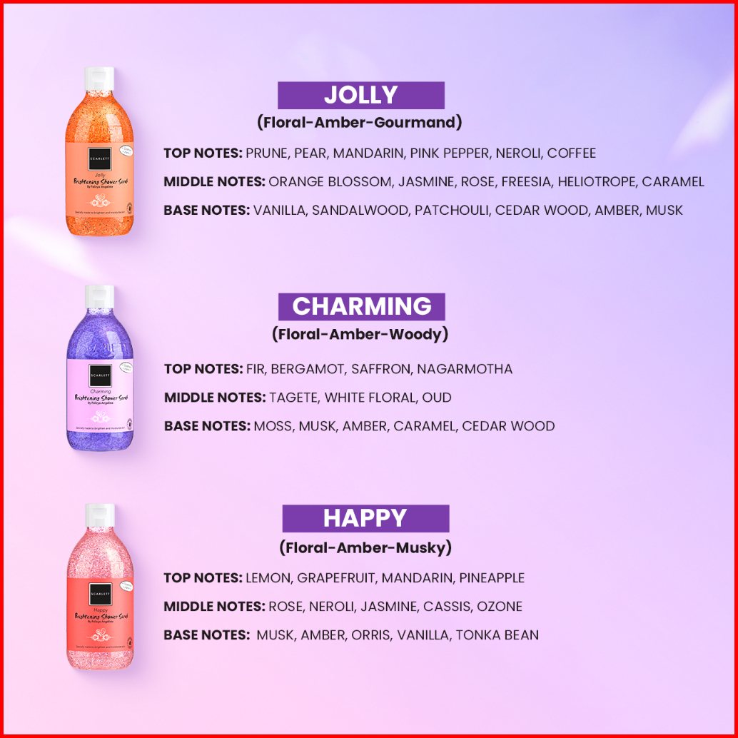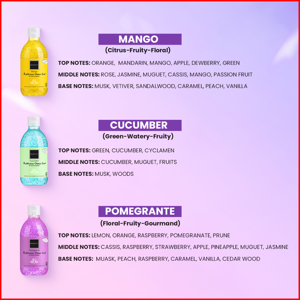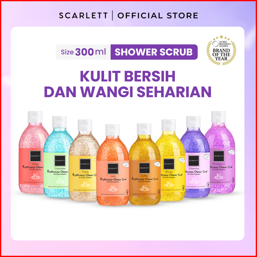 Scarlett Whitening Shower Scrub Happy Charming Jolly Freshy Cucumber Mango Pomegrante Coffee Melembabkan Dan Menghaluska