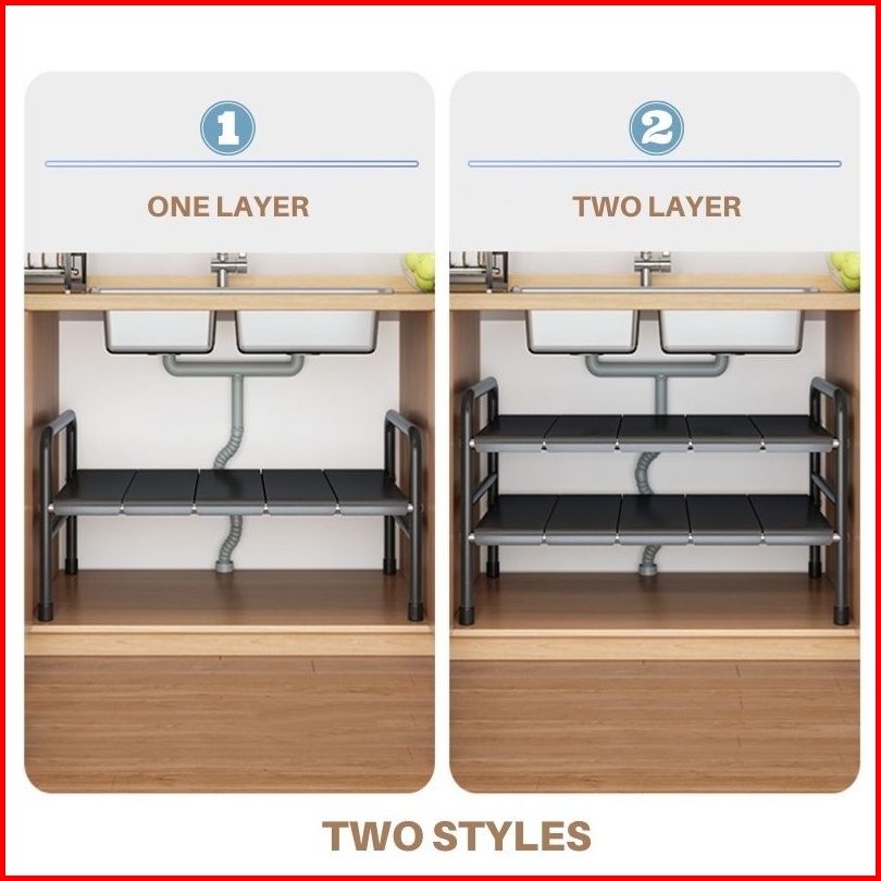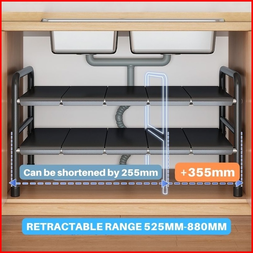 Extendable Stainless Steel Under Sink Rack Kitchen Organizer Kitchen Storage Shelf Rak Bawah Sinki Boleh Dipanjan Stainl