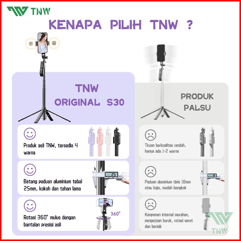 Tnw S30 Tongsis Tripod Bluetooth 1.8m Fill Light Tongsis Tripod Remote Tongsis Hp Selfie Stick Bluetooth 4in1 Tongsis Gi