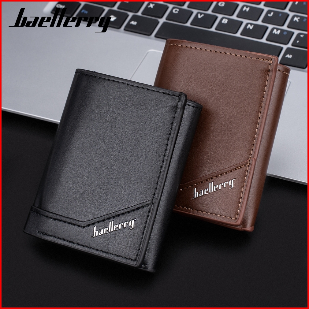 Baellerry K9214 Dompet Pria Lipat Pendek Kartu Bahan Kulit Pu Leather Premium Baeos