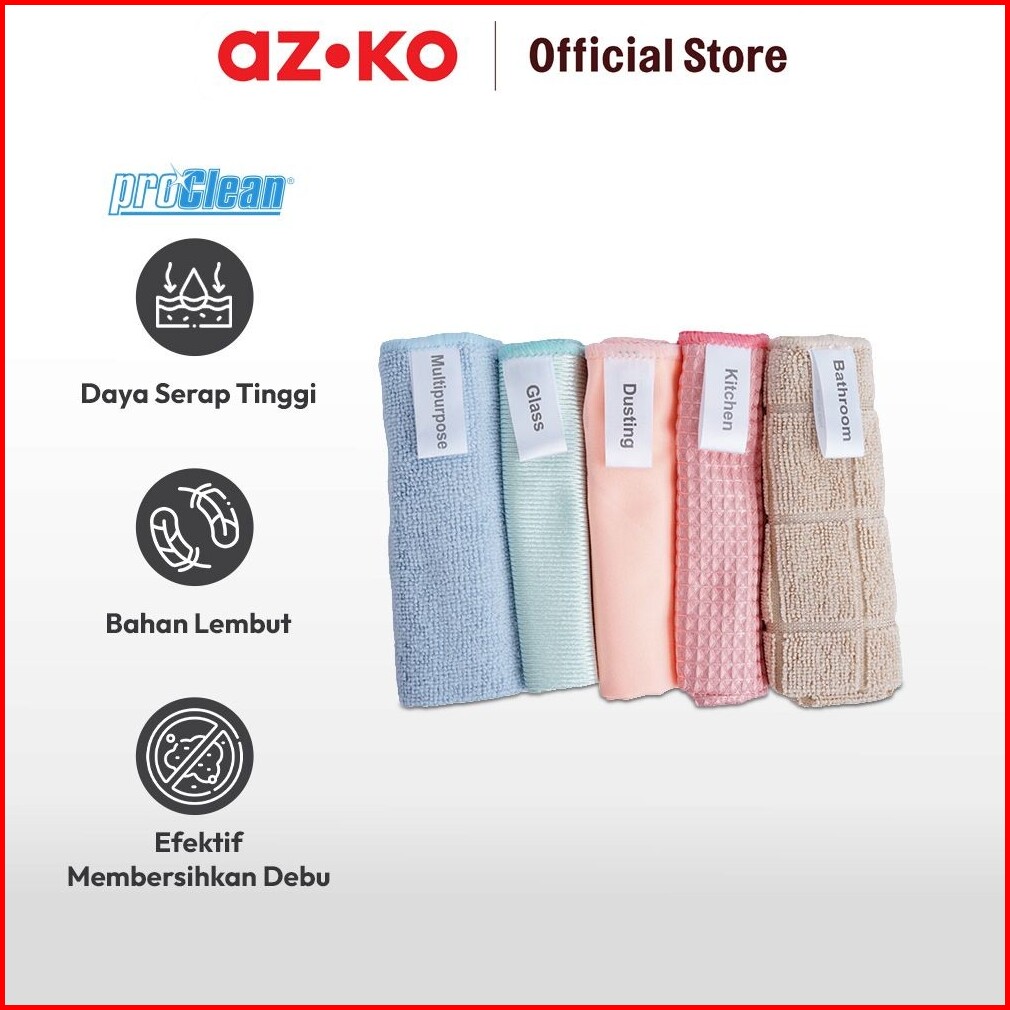Azko Proclean Set 5 Pcs Kain Lap Dapur Microfiber Kain Serbet Pembersih Serbaguna Topo Dapur Multifunctional Towel Clean