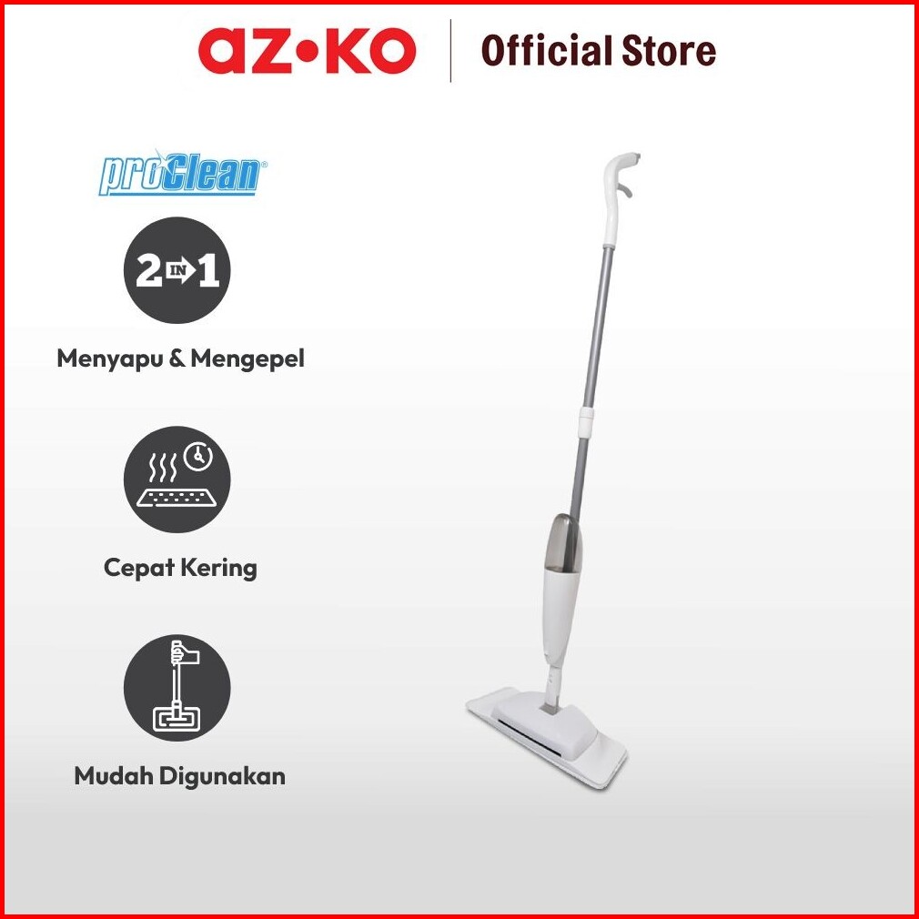 Azko Proclean Alat Pel Spray Dengan Sweeper Manual - Putih Water Spray Mop Floor Pelan Semprot Alat Kebersihan Pel Pembe