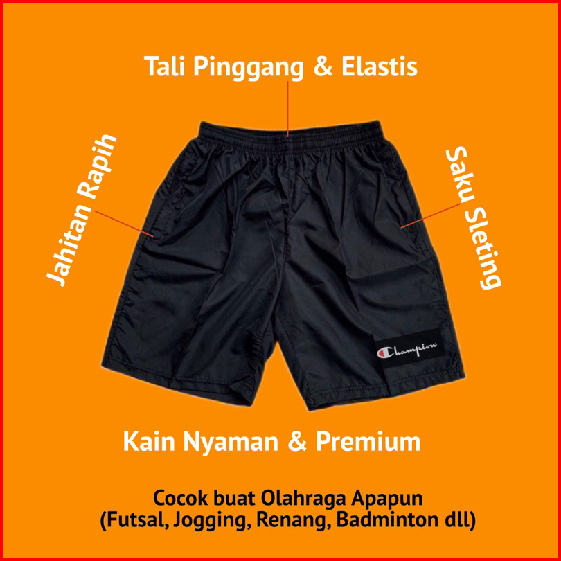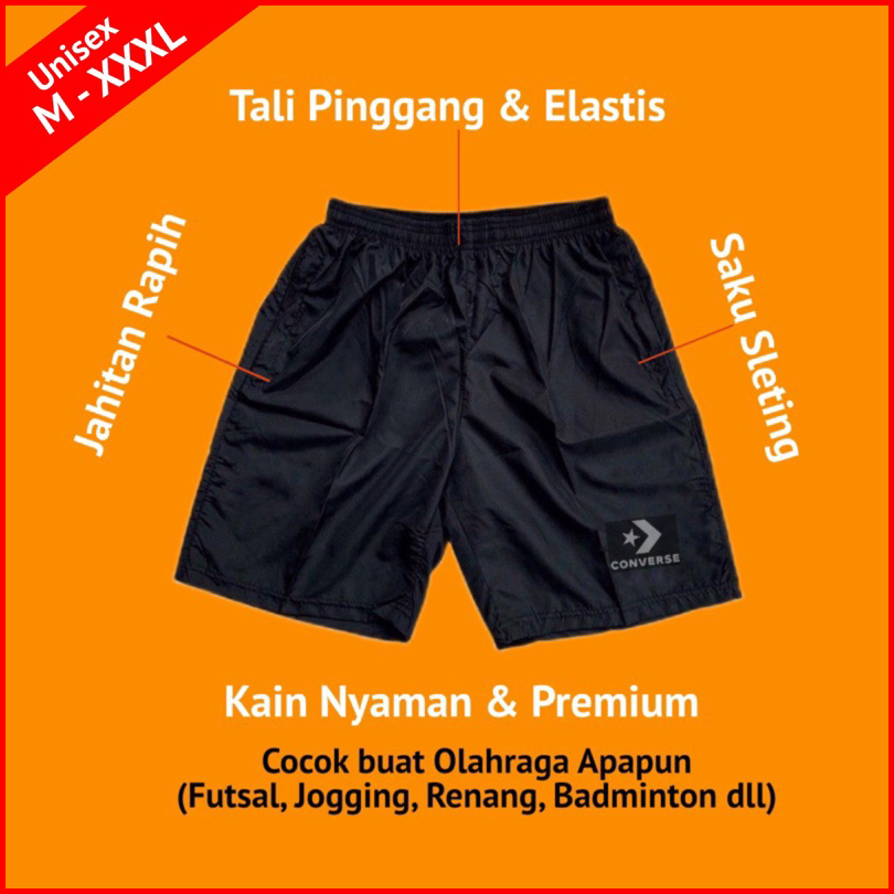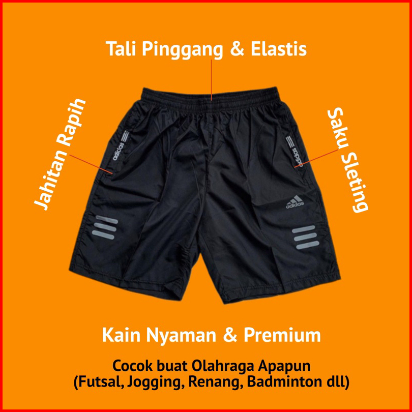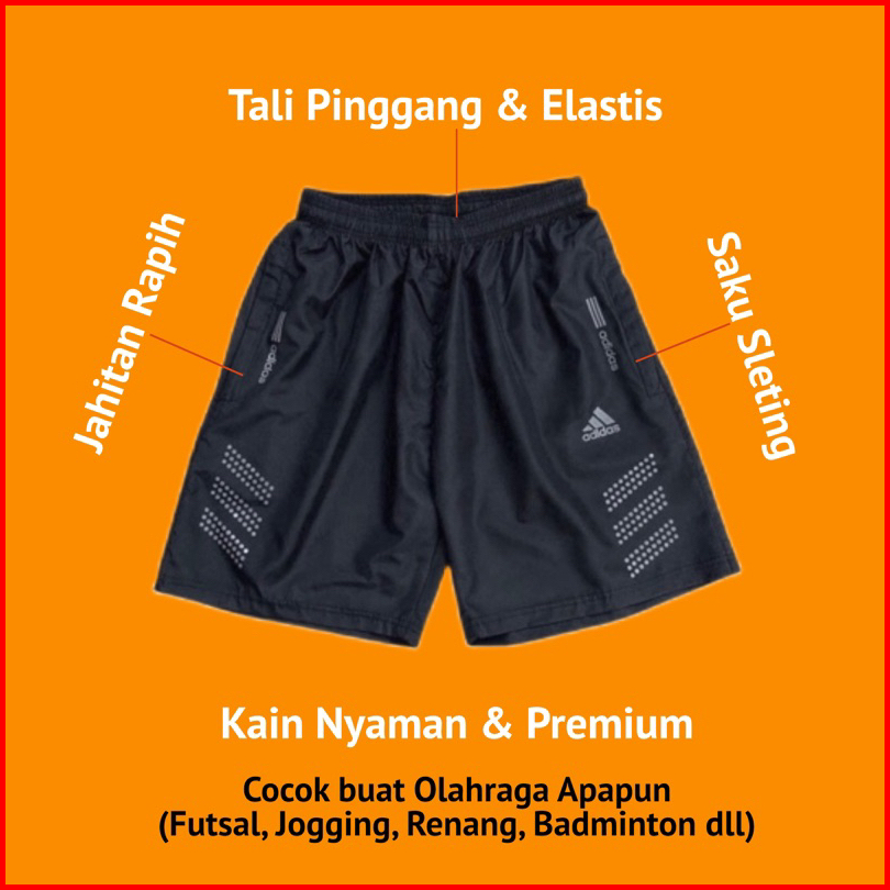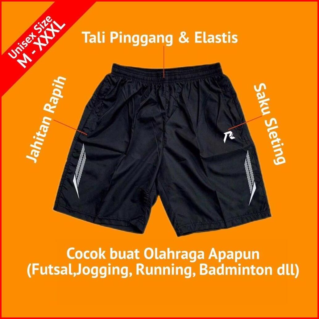 Celana Pendek Olahraga Saku Resleting Pria Wanita Running Gym Sport Kolor Volly Futsal Bulu Tangkis Jogging Bahan Berkul