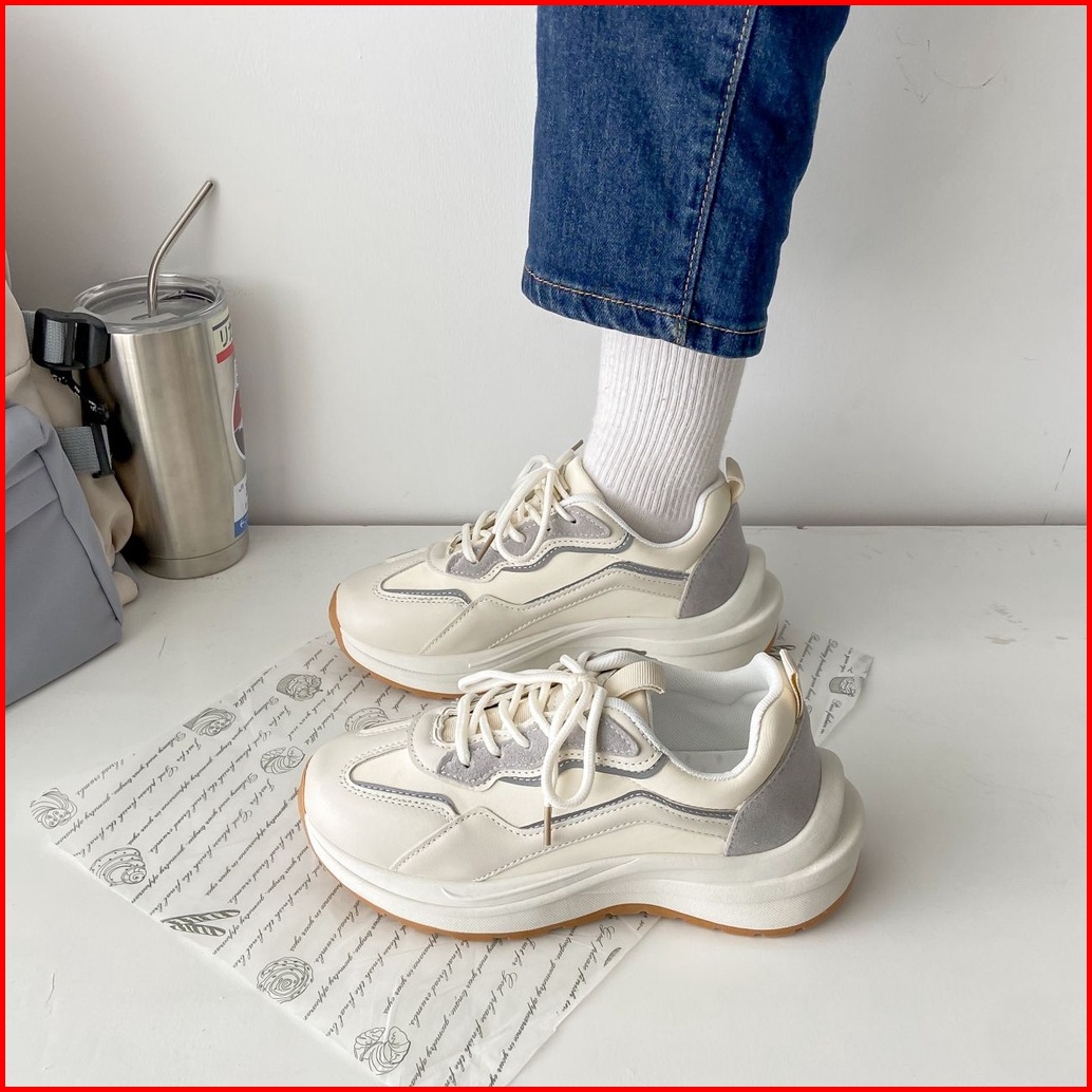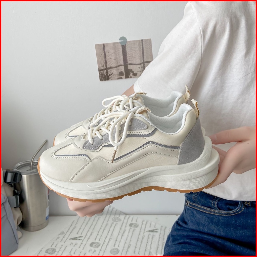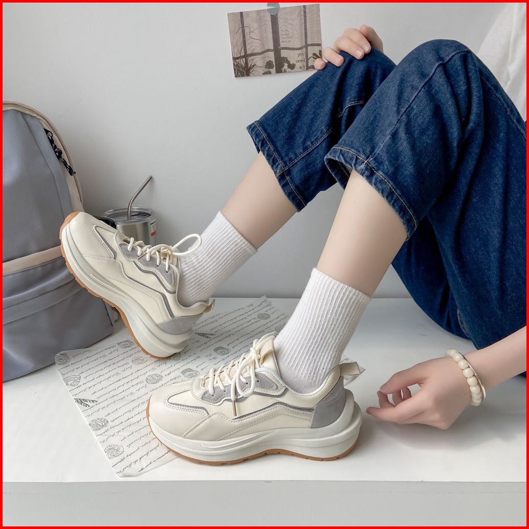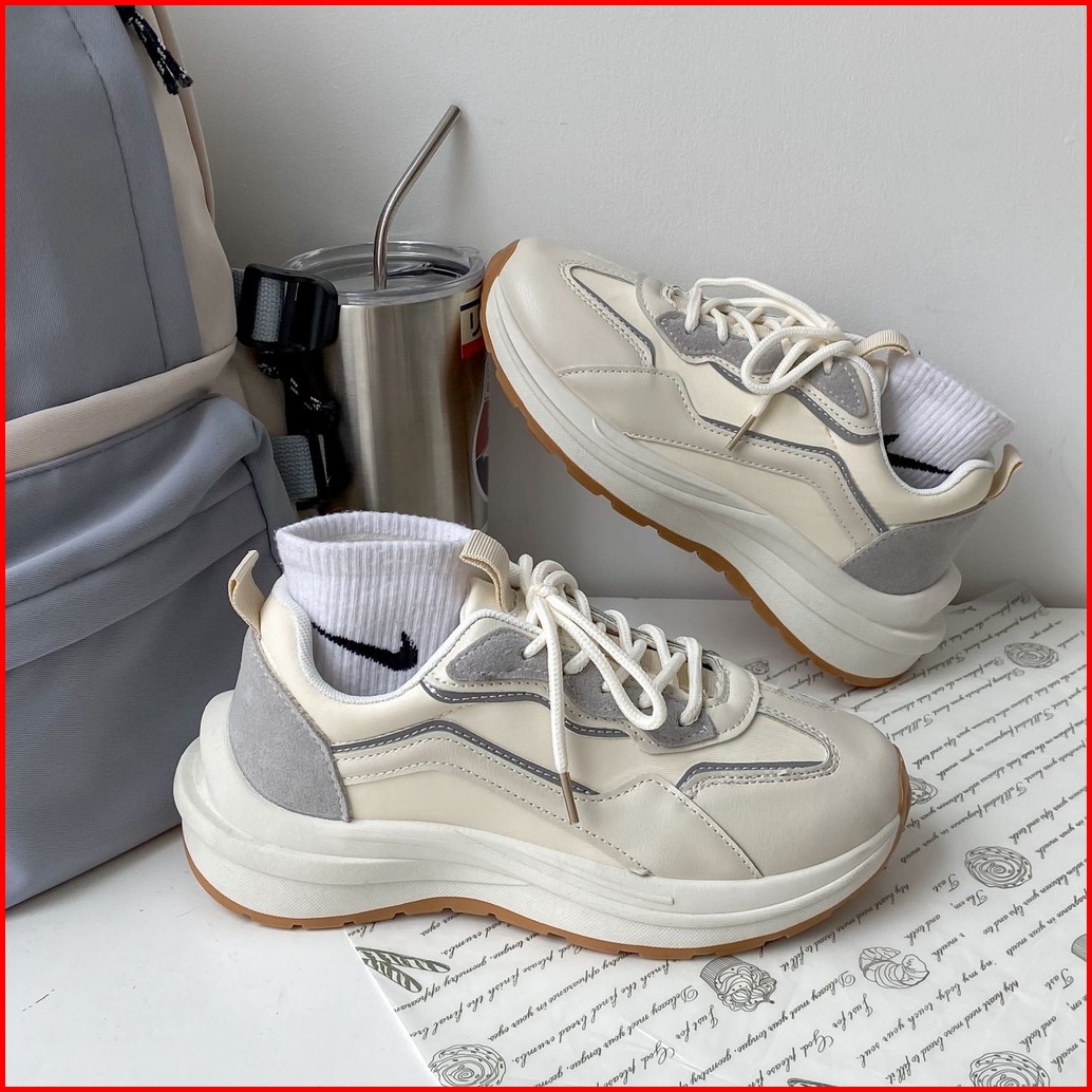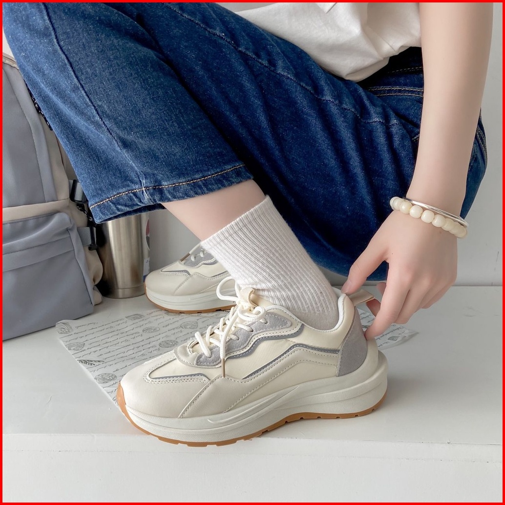 Asnk Sepatu Sneakers Wanita Korea Sport Shoes Krem H-515
