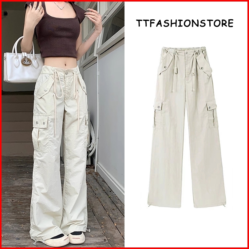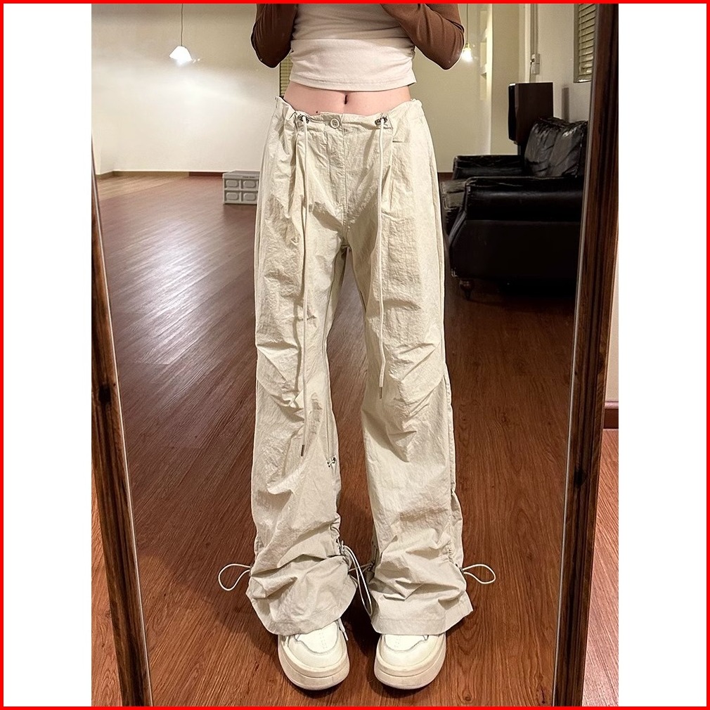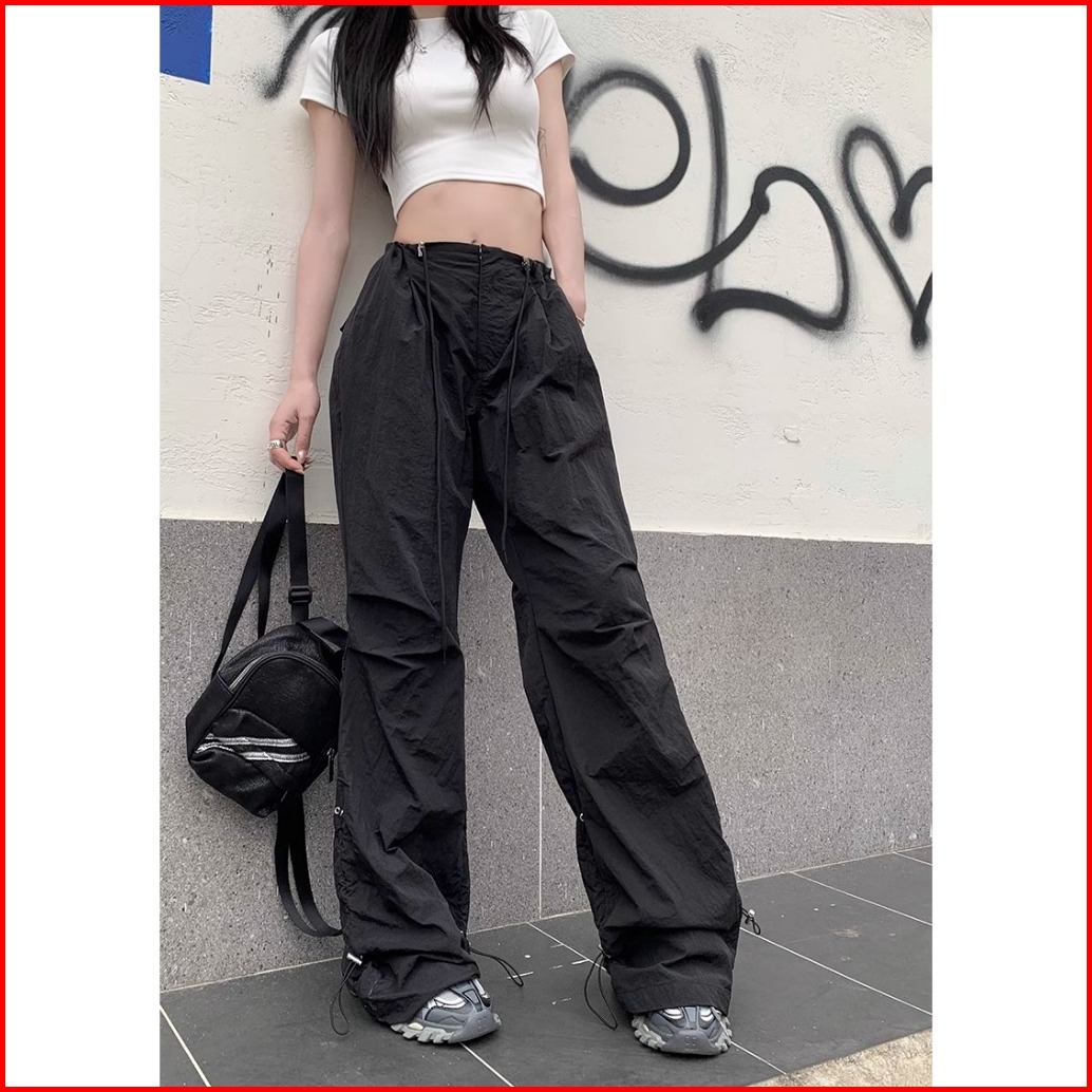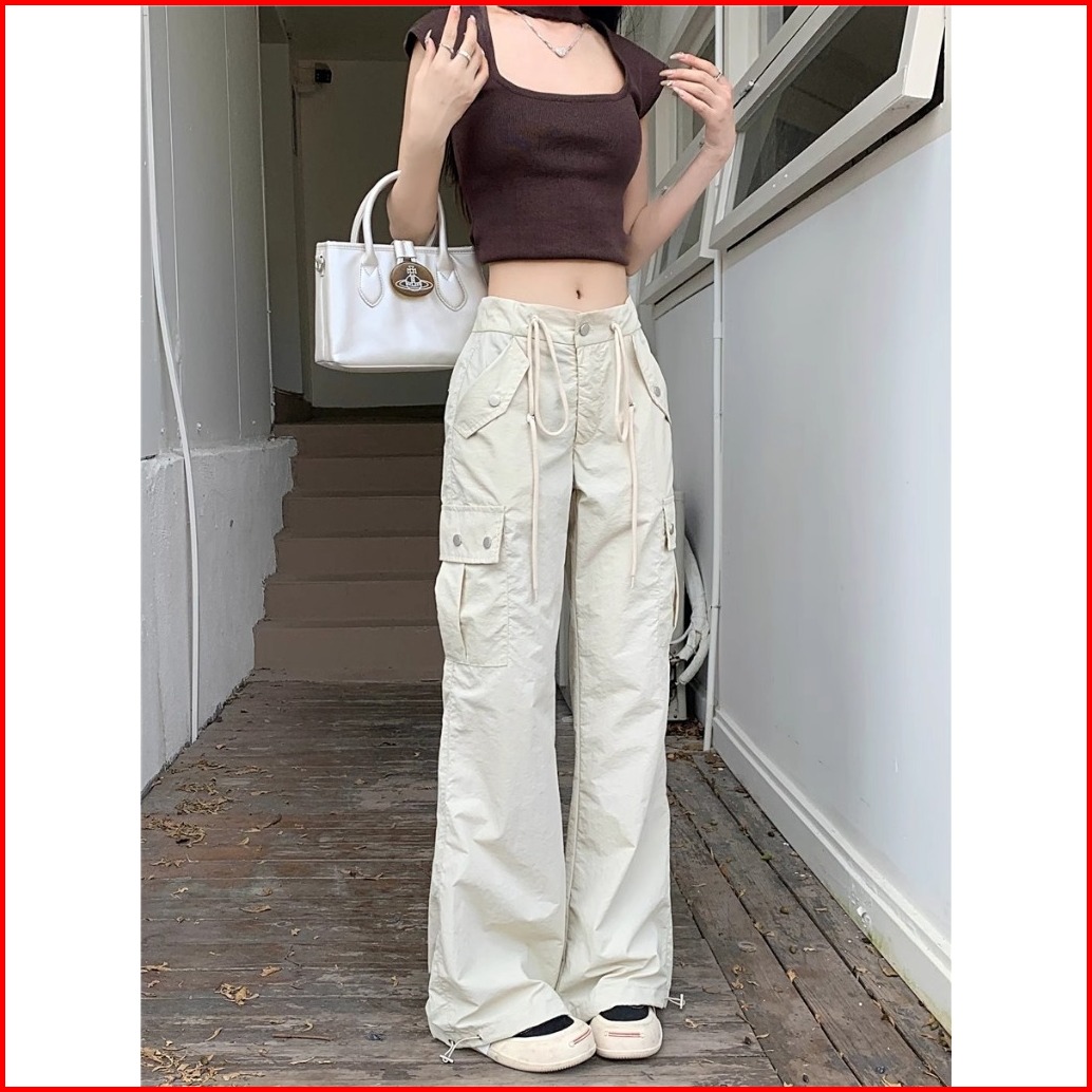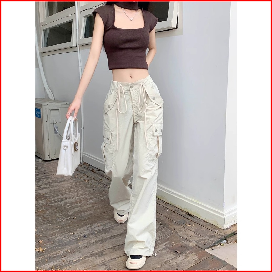 Celana Cargo Serut Wanita Korean Style - Celana Cargo Highwaist Loose Kasual Premium