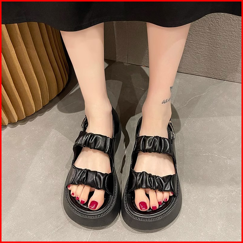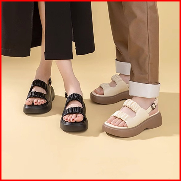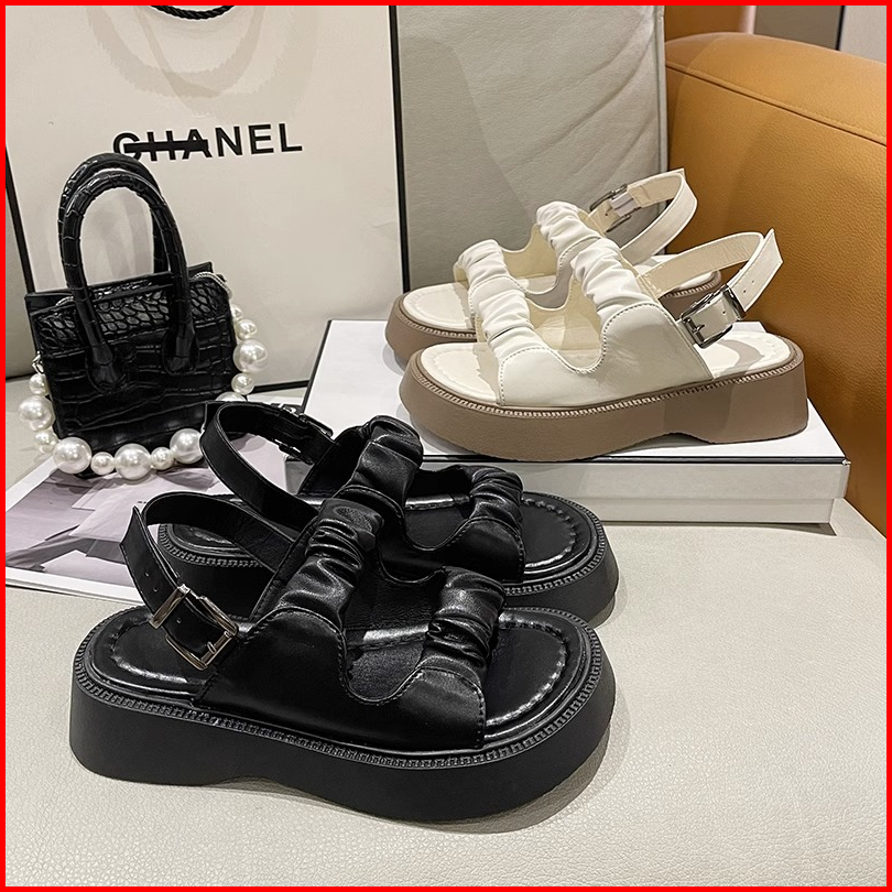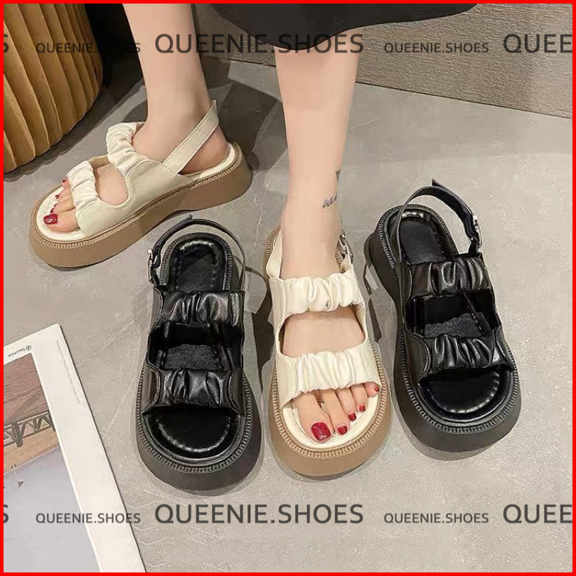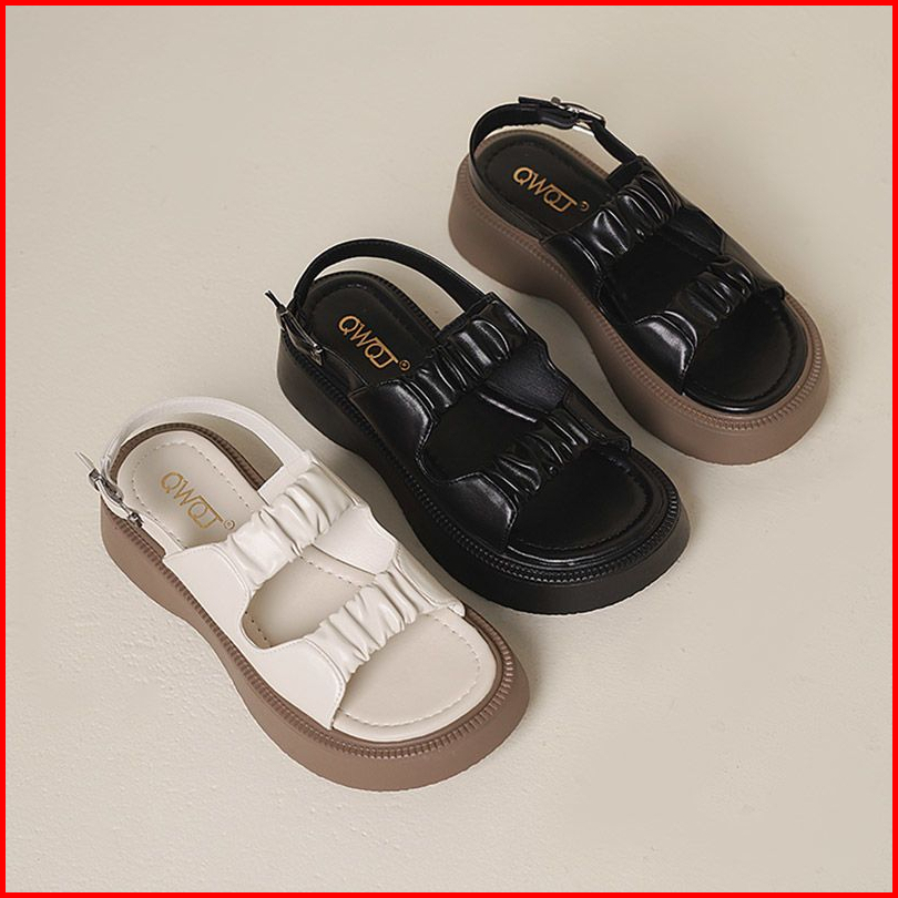 Qns Sandal Wanita Kekinian Sepatu Sandal Wedges Wanita Sandal Cewek Tali Slip-on Sepatu Wanita Premium Quality Putih Hit
