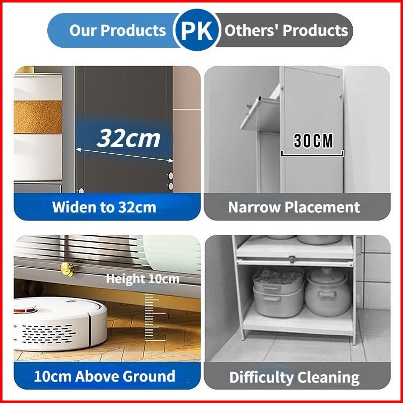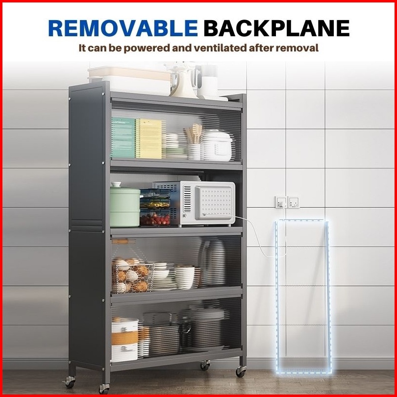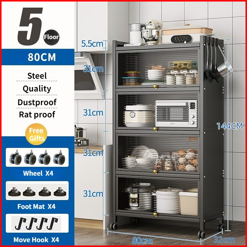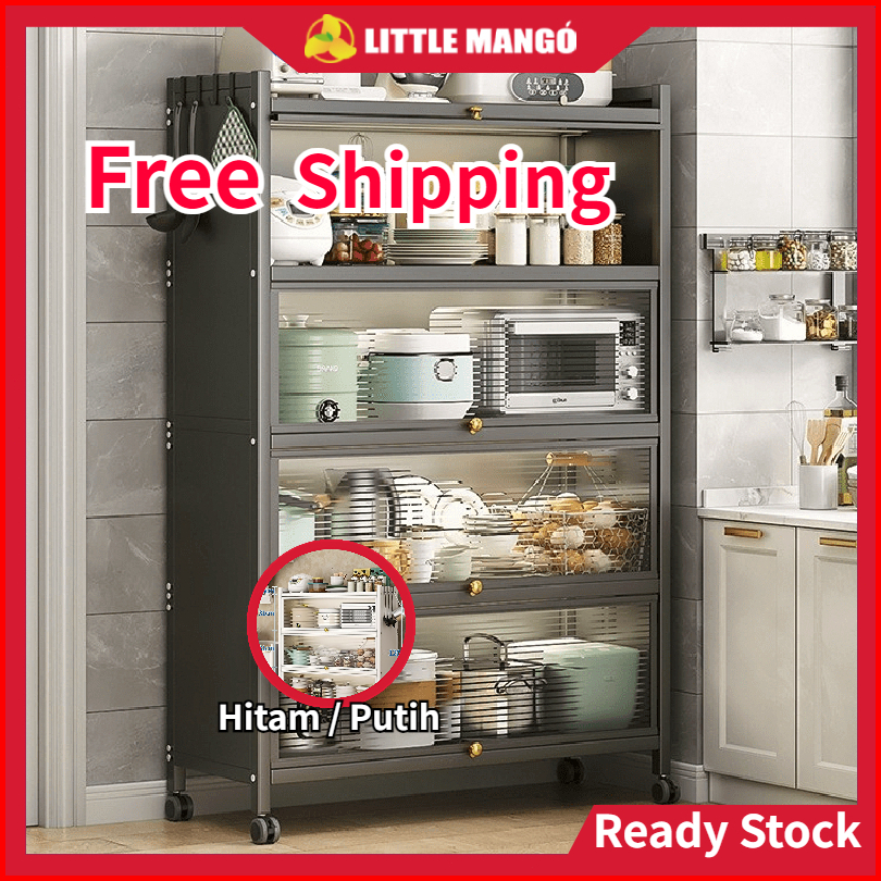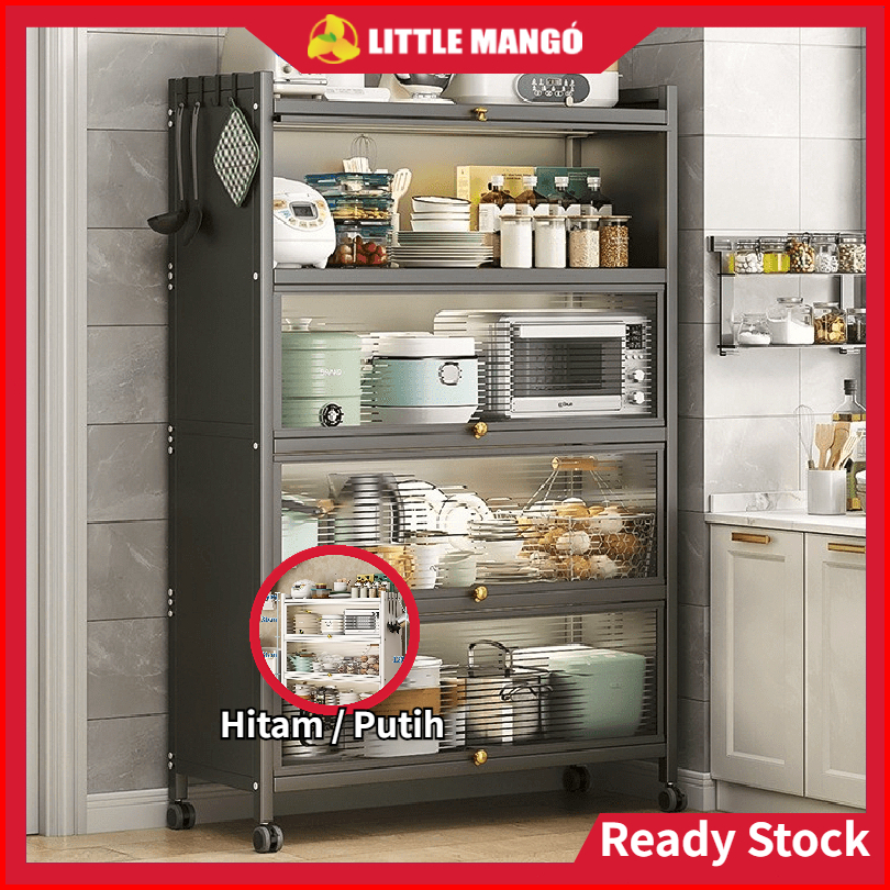 Kabinet Dapur Anti Deburak Multifungsi Pintu Geser Roda Penyimpanan Microwave Lpg Minimalis Modern - Multi Layer Tahan L