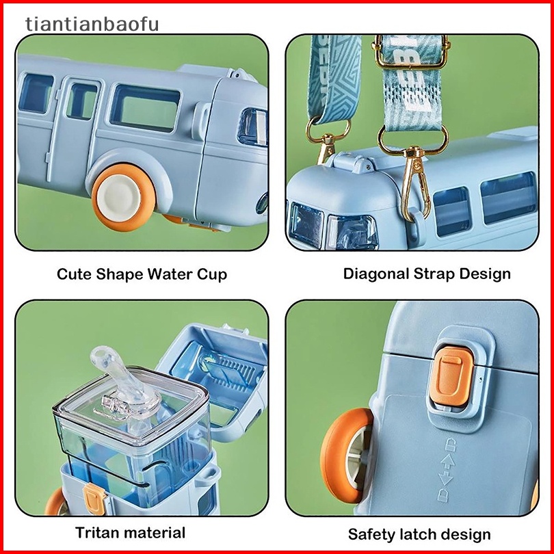 Penjual Lokalcangkir Air Jerami Mobil Bentuk Bus Cangkir Minum Penguncian Aman 500ml Botol Air Anak Dengan Lanyard Yang