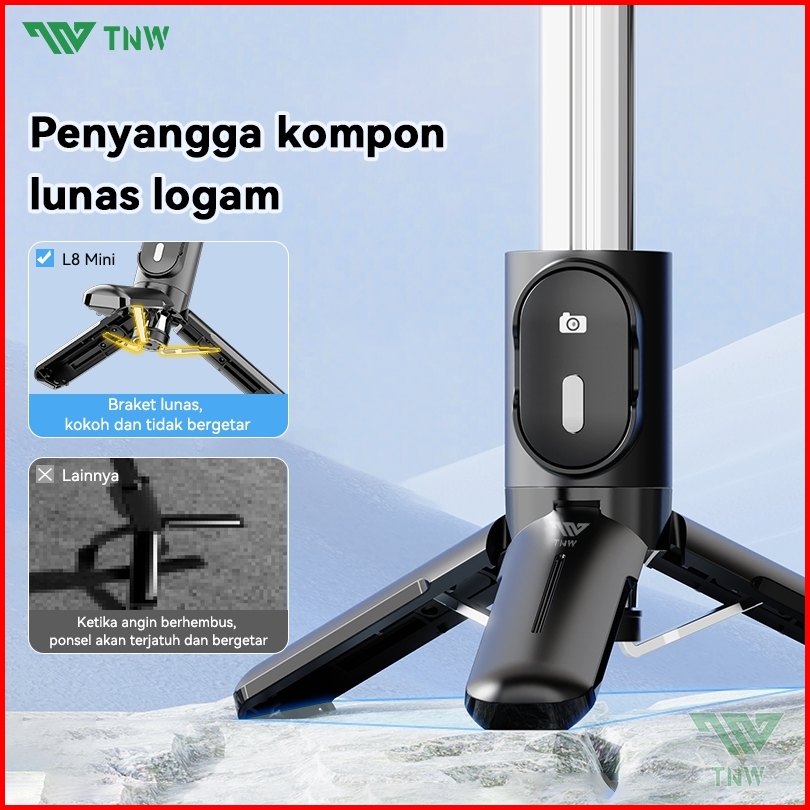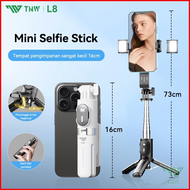 Tnw L8mini Tongsis Bluetooth Tongsis Tripod Mini Selfie Stick Remote 3 In 1 Tongsis Portable Led Fill Light