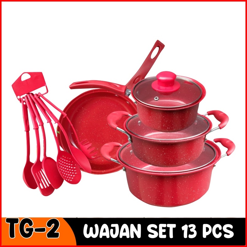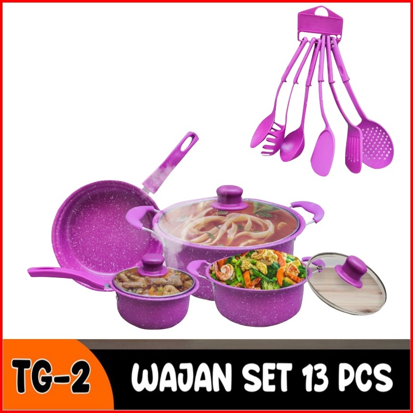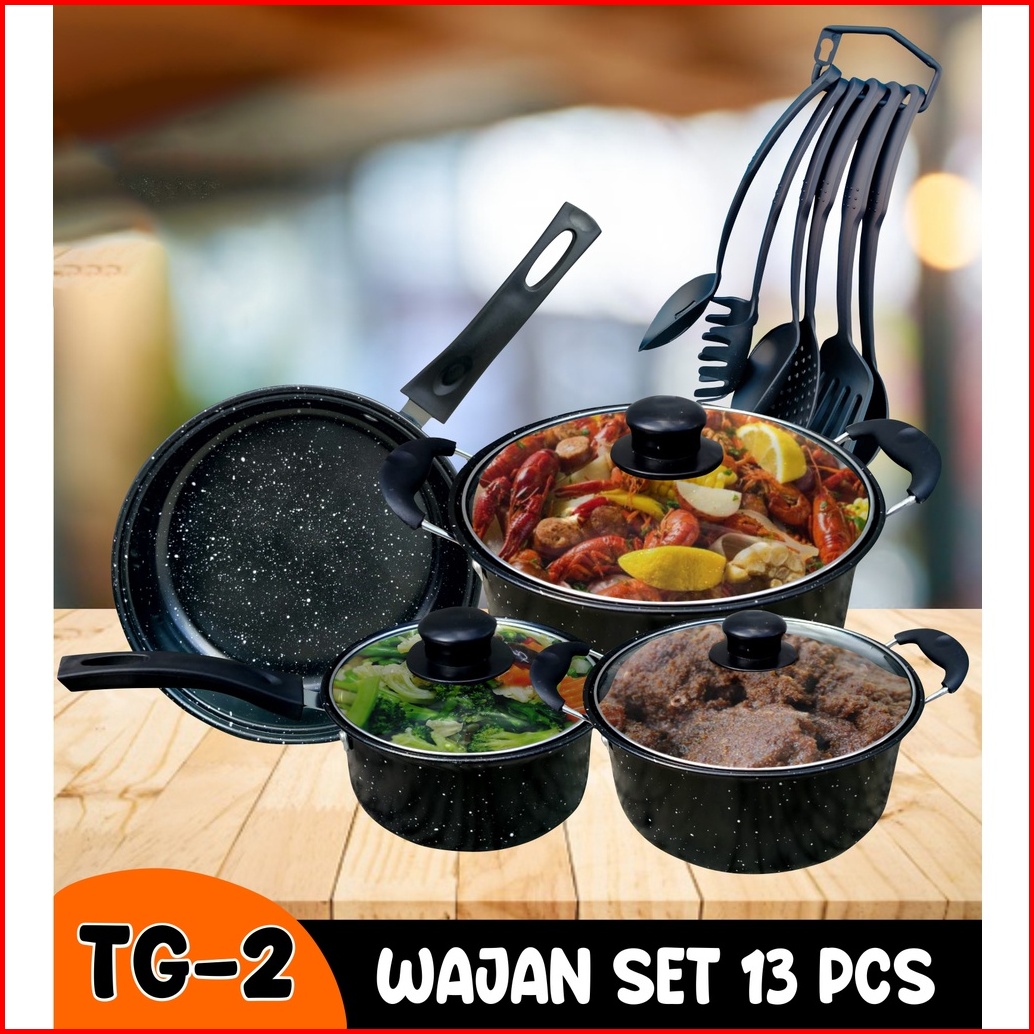 Panci Set Serbaguna Teflon Marble 13 Pcs Cookware Set Tutup Kaca Homedekorationshop