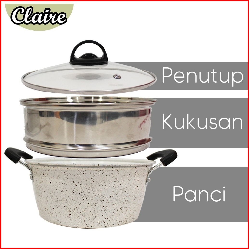 Panci Sup Dengan Kukusan Panci Siomay Panci Kukus Serbaguna Panci Kukus Steam Pot Ukuran 20cm