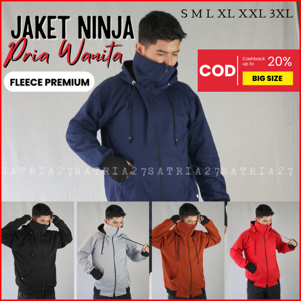 Jaket Pria Wanita Jumbo Dewasa Ninja Roundhand Unisex Polos Fleece
