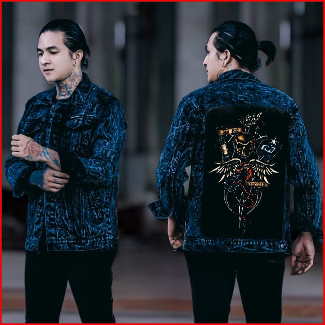 Jaket Jeans Sandwash Printing Jaket Jeans Gambar Belakang-
