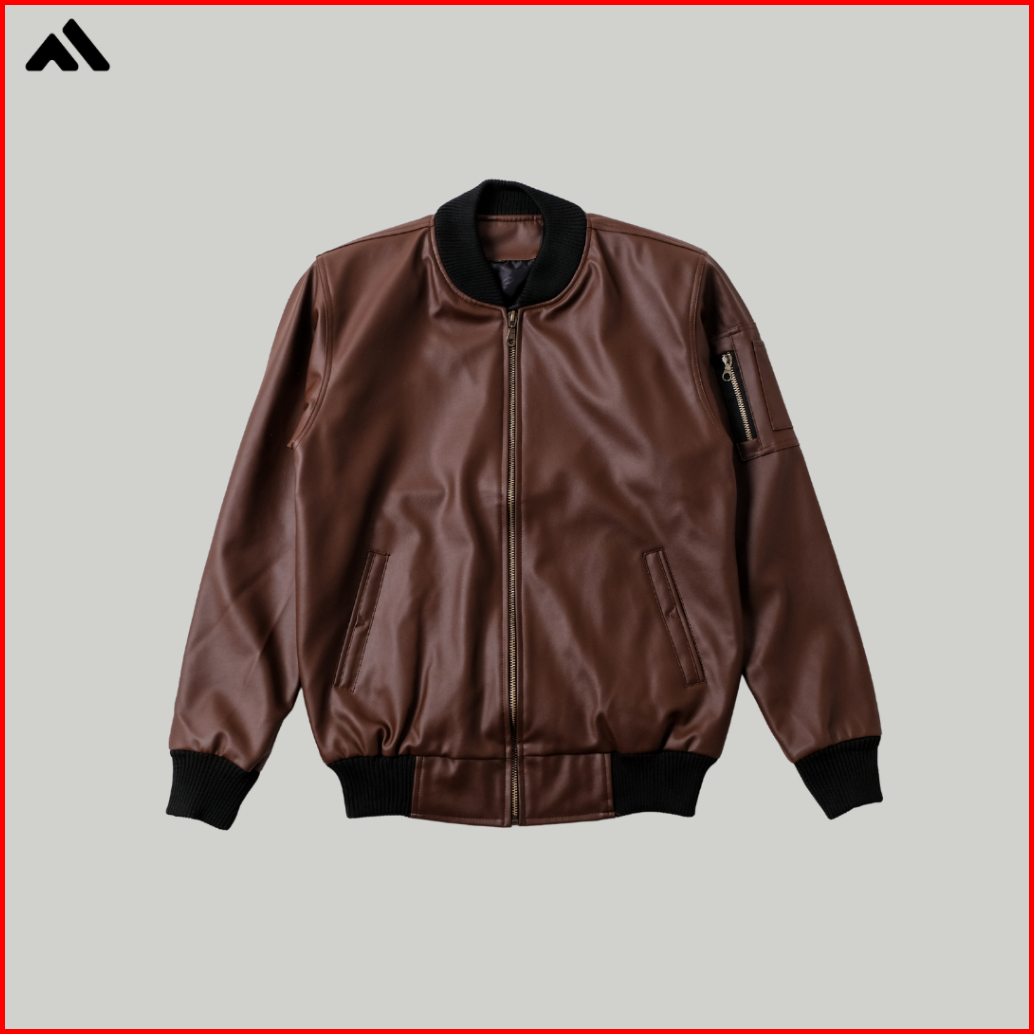Jaket Kulit Pria Model Bomber Pria Coklat Polos Brand Manta