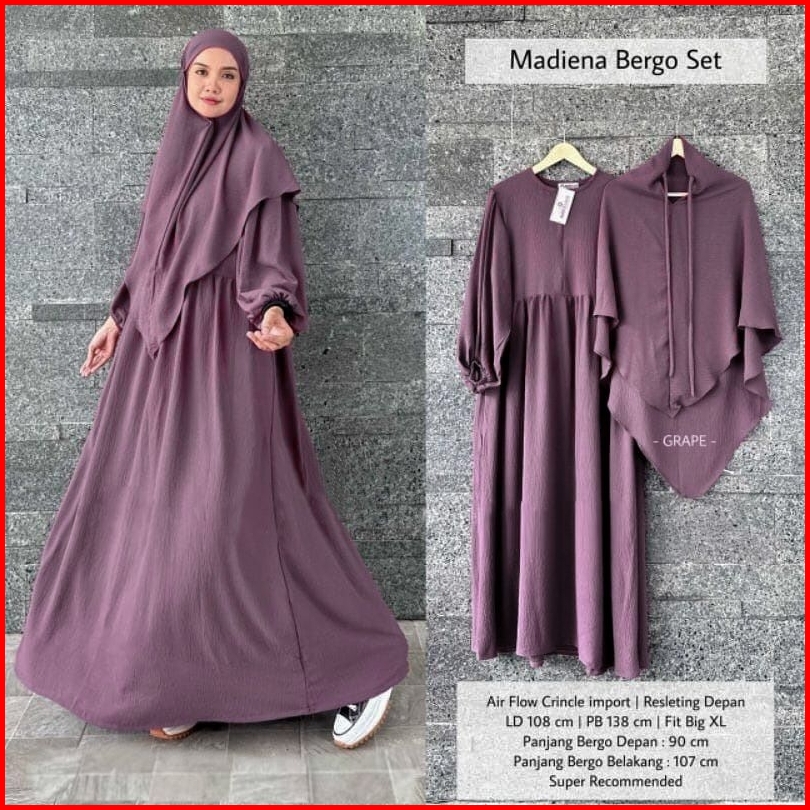 Set Gamis Syar I Cringkel Madiena Set Bergo
