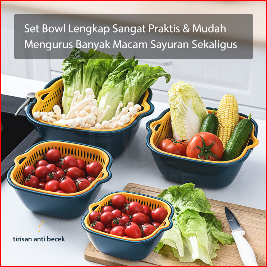 Hugo Keranjang Pengering Sayuran Buah Wadah Peniris Cuci Sayur Buah Saringan Serbaguna 8 In 1