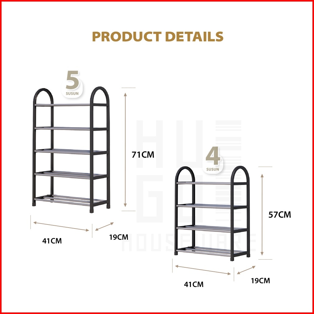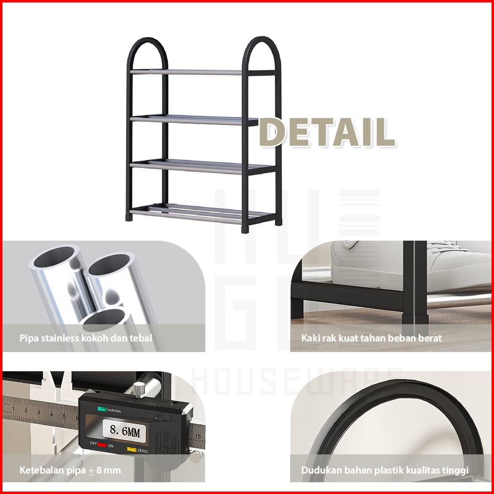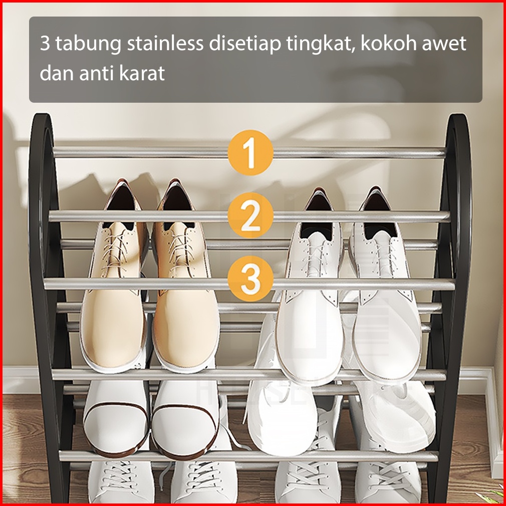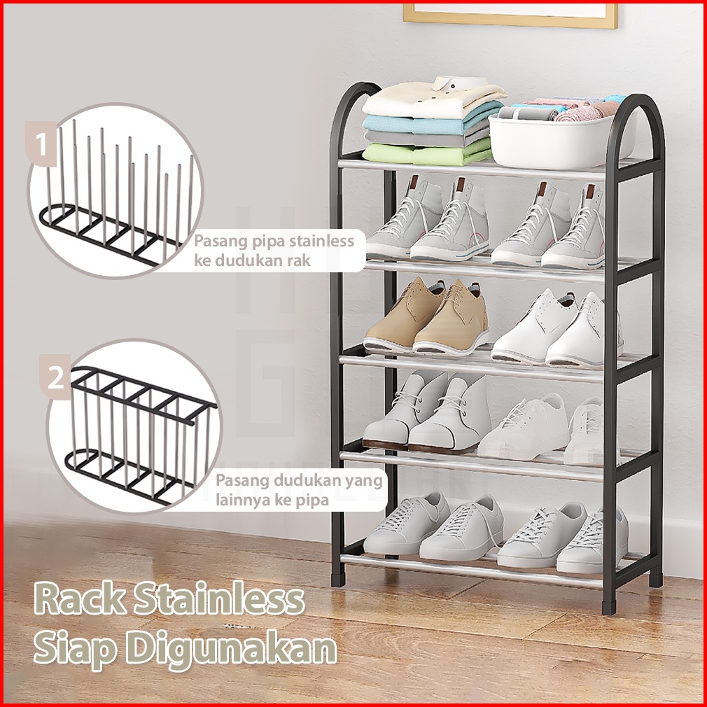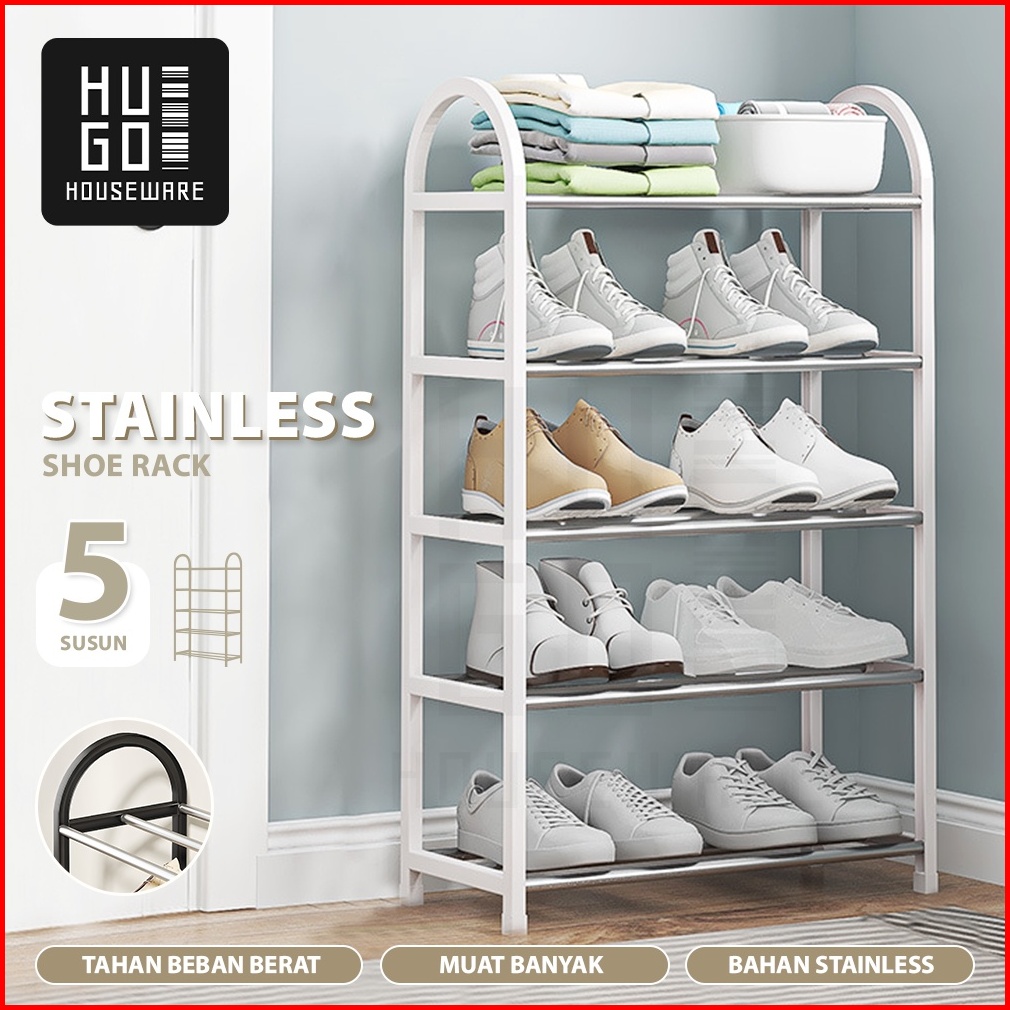 Hugo Rak Sepatu Sandal 4 Dan 5 Susun Tempat Sepatu Portable Serbaguna Stainless Steel