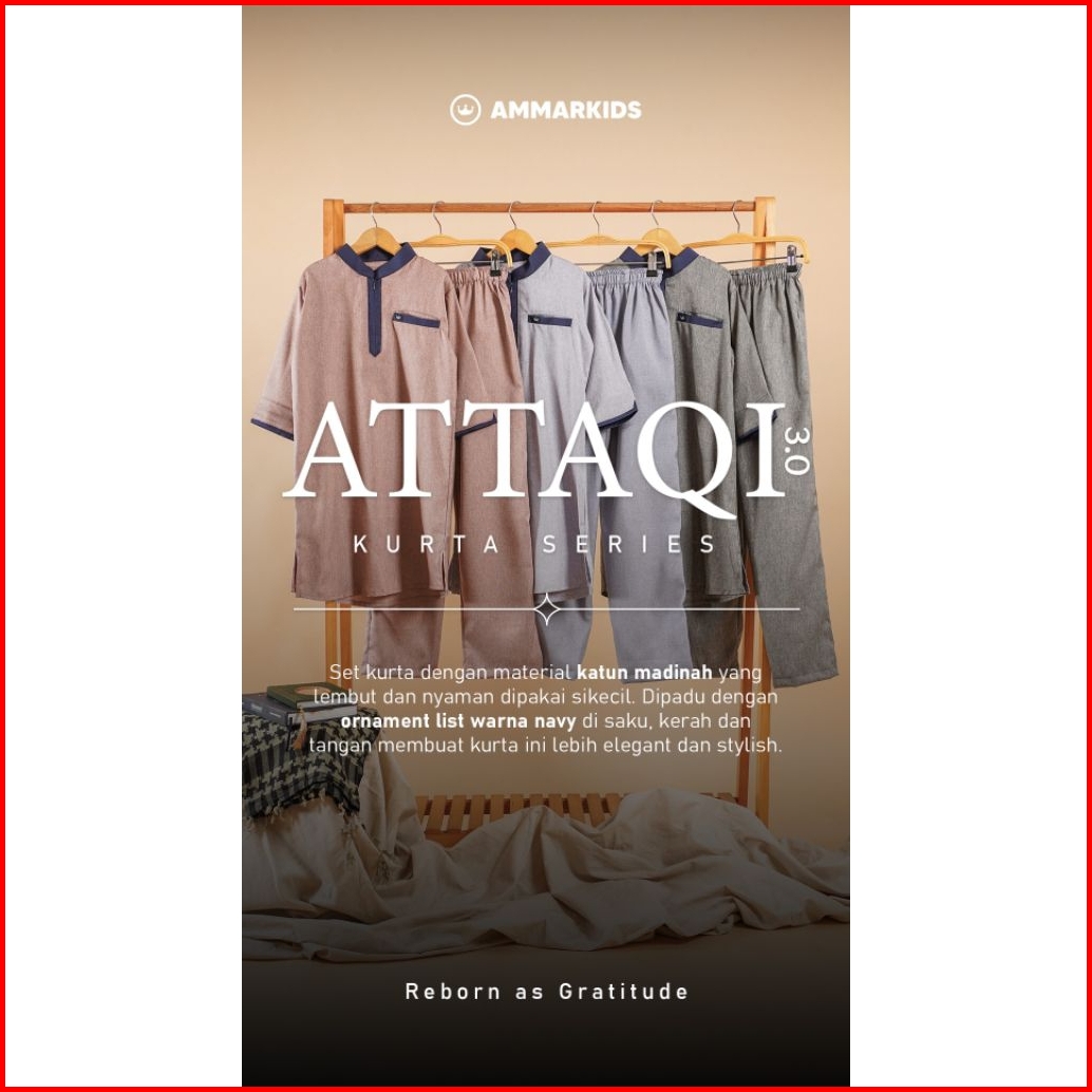Ammarkids Setelan Koko Kurta Anak Laki Laki 3-12 Tahun Attaqi 3.0 Bahan Katun Madinah Premium