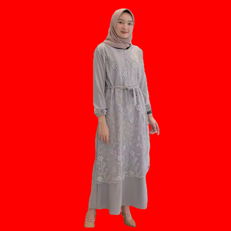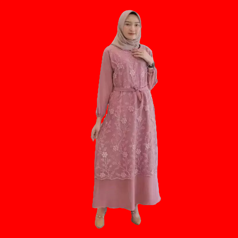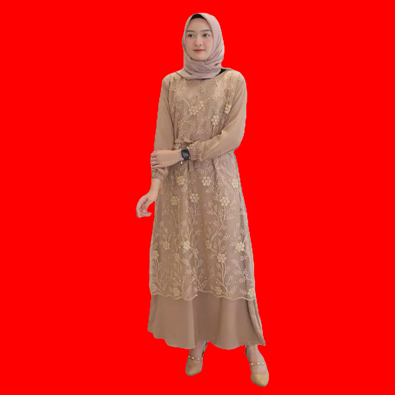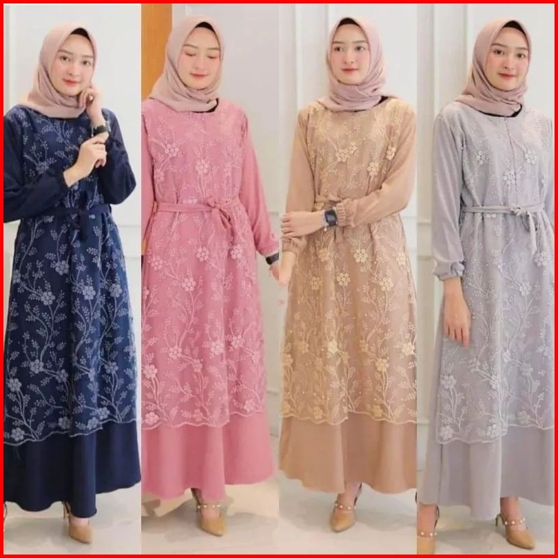 Gamis Burkat Tile Mutiara Premium Baju Gamis Kekinian Dres Longdres Lengan Karet