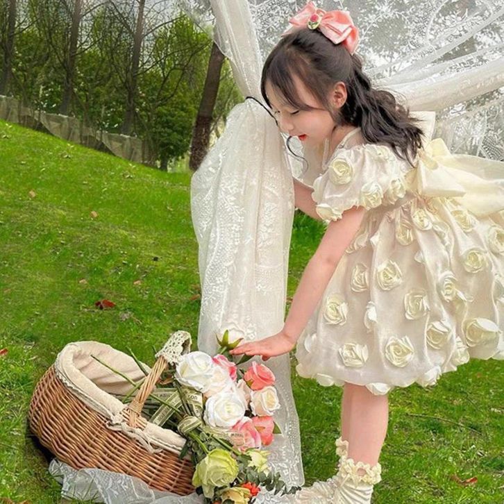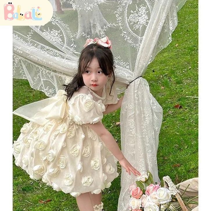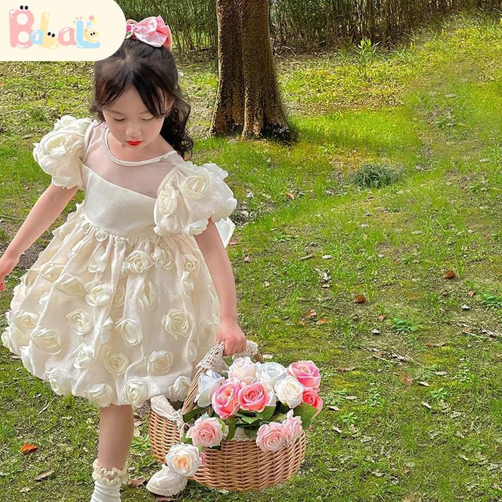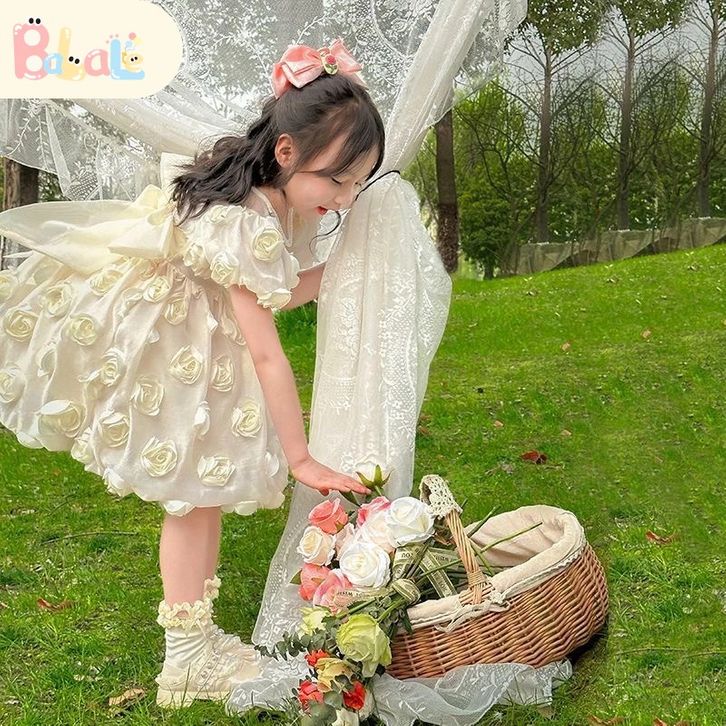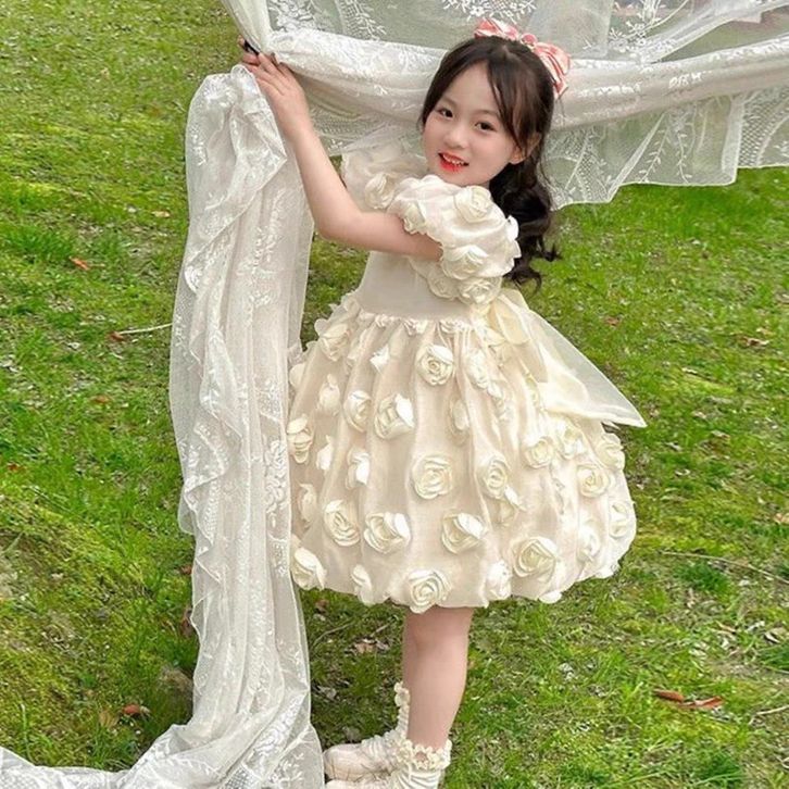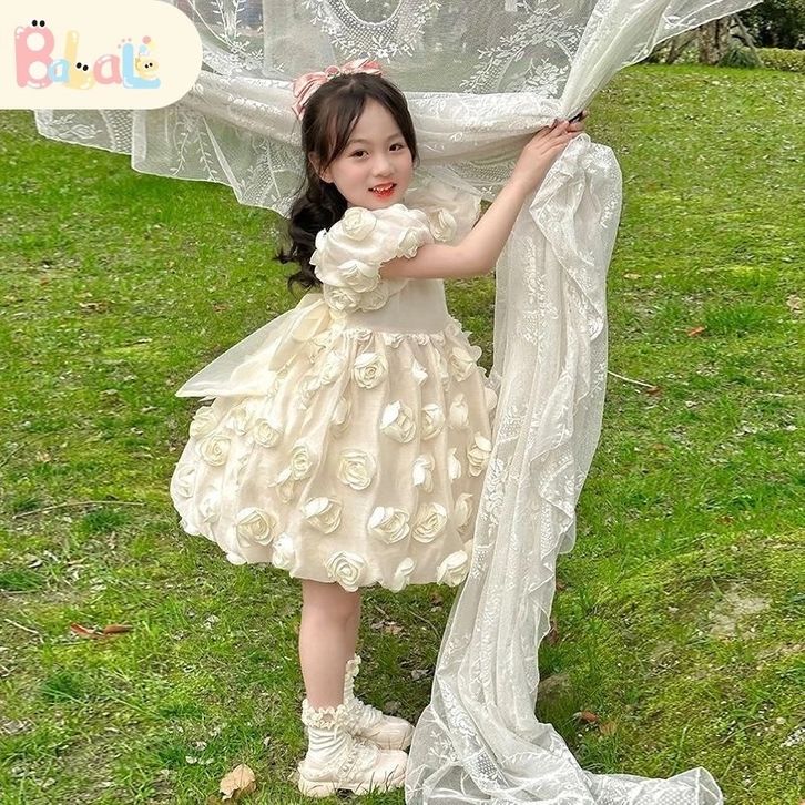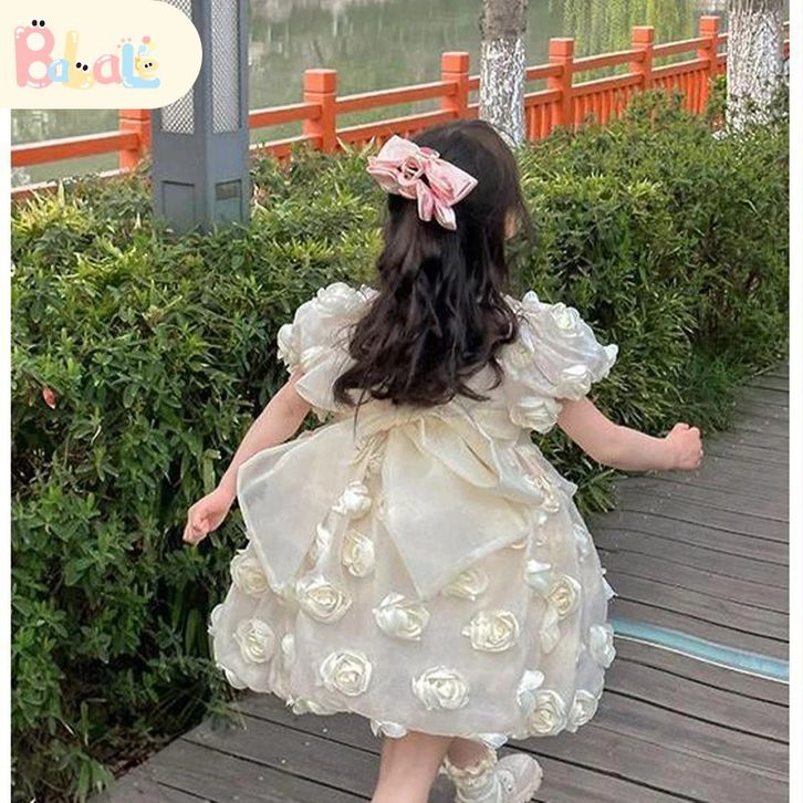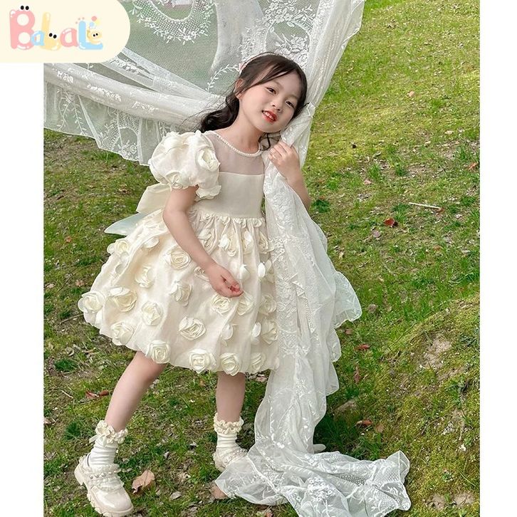 Dress Anak Perempuan Import Gaya Barat Princess Dress Gaun Lengan Pendek Baju Anak Perempuan Dress
