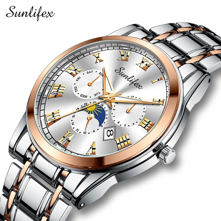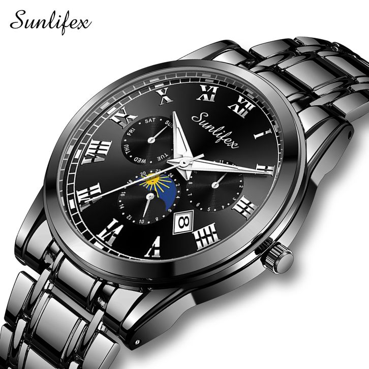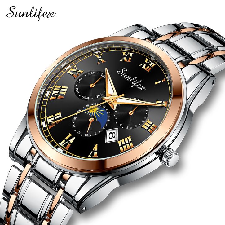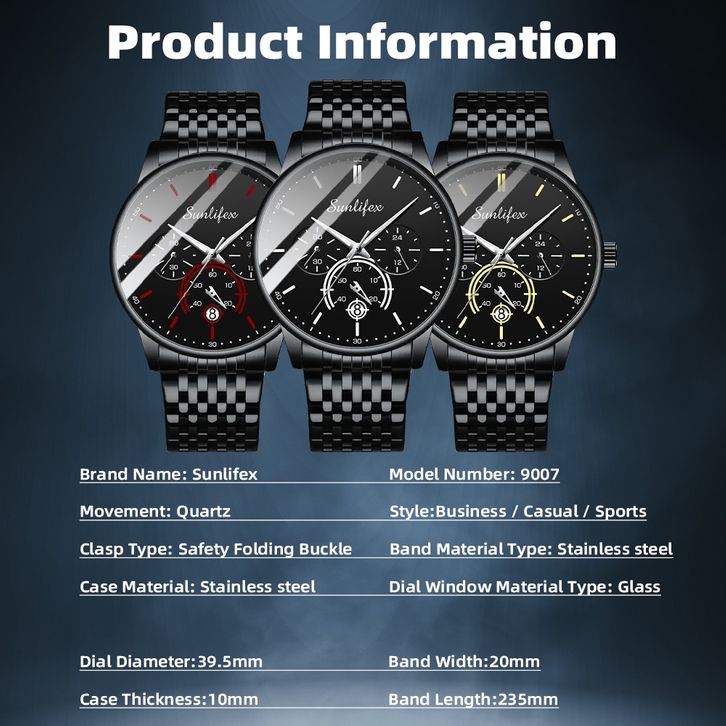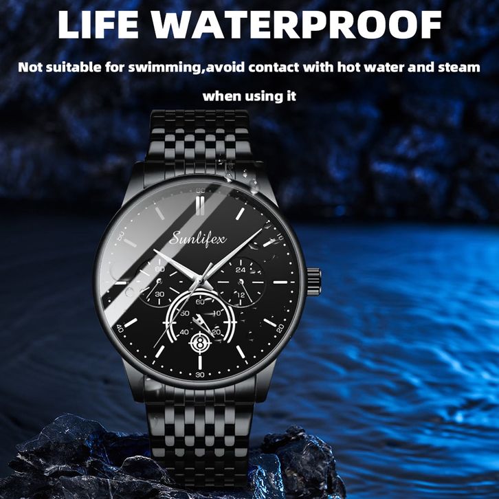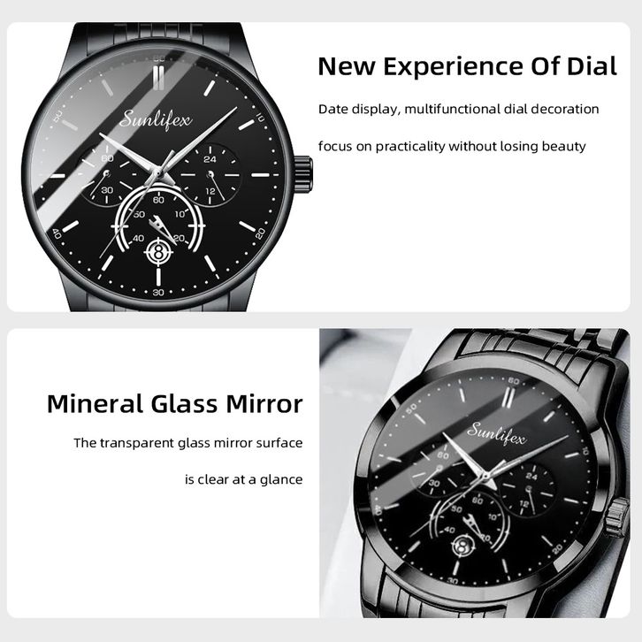 Jam Tangan Pria Original Bisnis Anti Air Kuarsa Jam Pria Calendar Tali Stainless Steel Jam Tangan Cowok 9007 - Jam Cowok