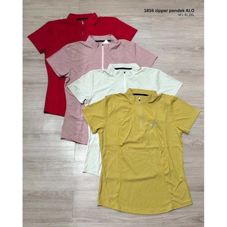 Kaos Zipper Olahraga Wanita Nilon Dry Fit Kaos Olahraga Wanita Pendek Outfit Olahraga Wanita