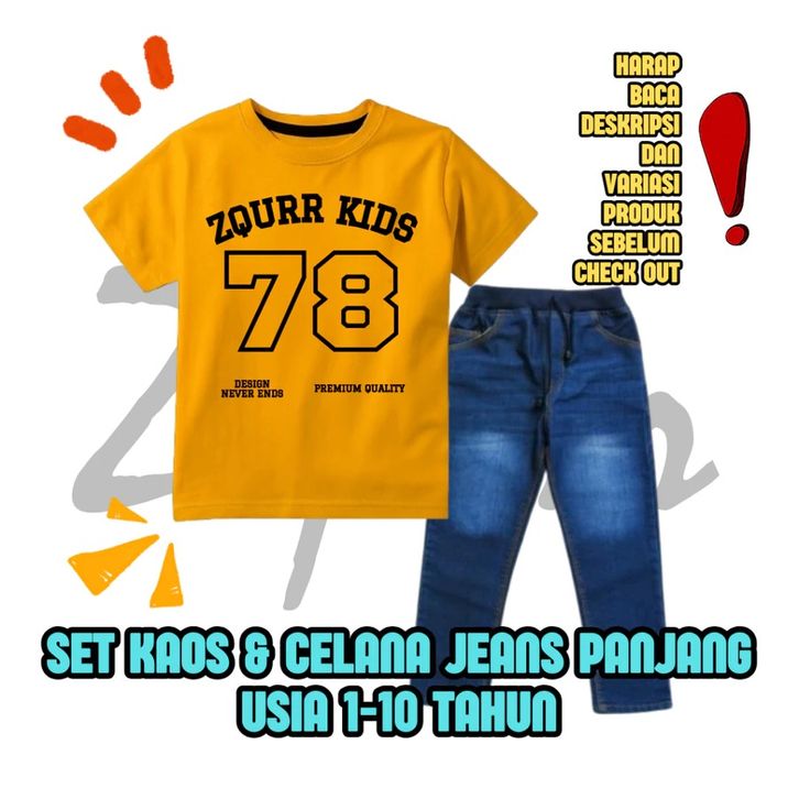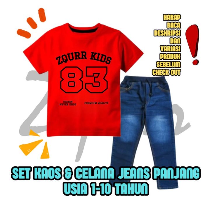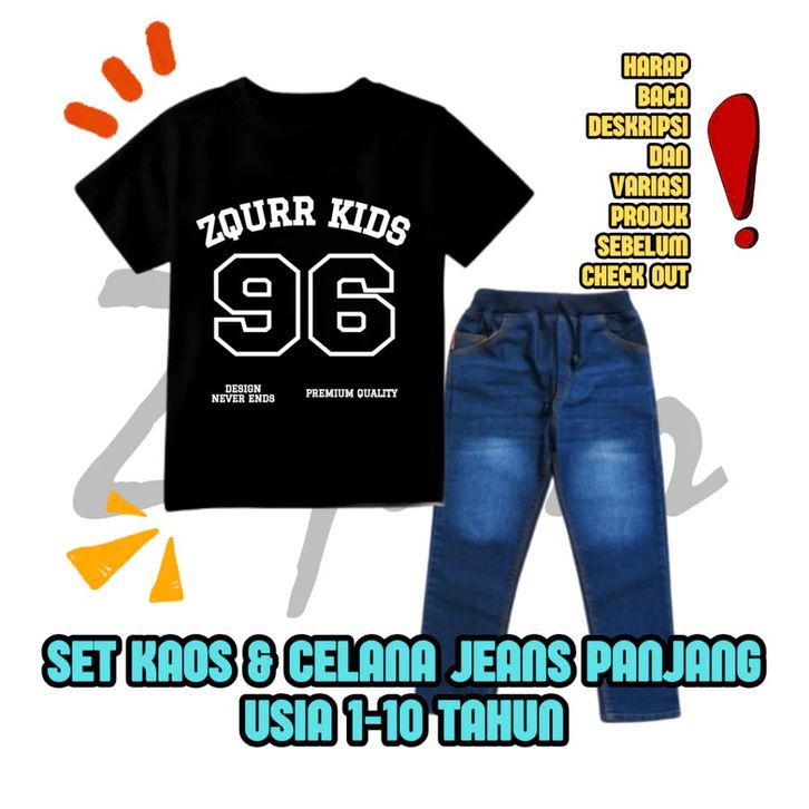 Set Kaos Distro Polos Celana Jeans Panjang Celana Distro Polos Setelan Anak Laki-laki 1-10 Tahun Fashion Anak Cowok