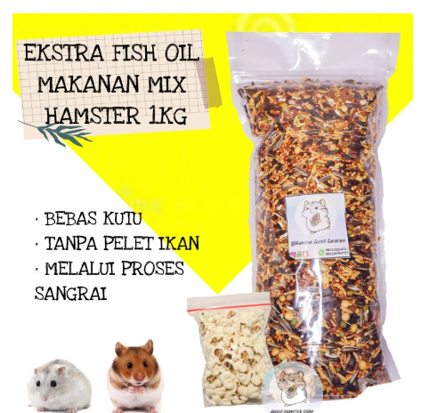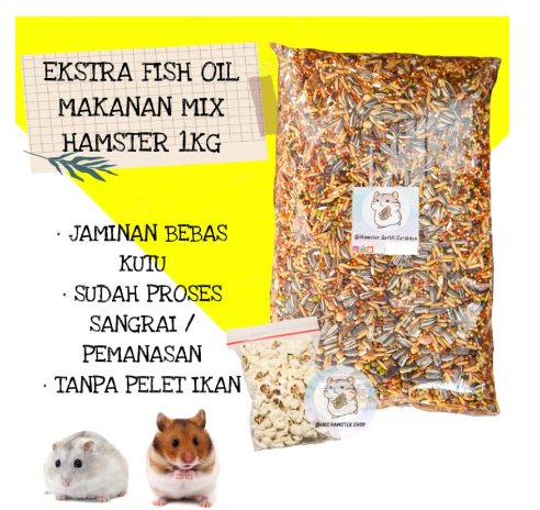 Makanan Hamster Mix 1kg, Ekstra Fish Oil | ANTI KUTU Free Popcorn by HGS