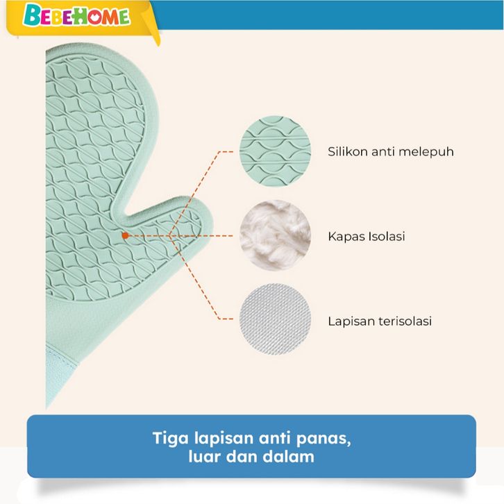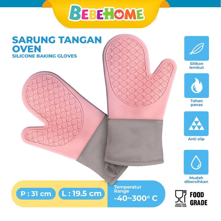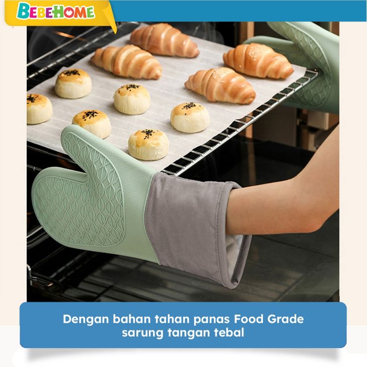 BEBEHOME Sarung Tangan Silikon Anti Panas Cocok Untuk Oven / Microwave Anti Selip Silikon Tahan Lama Tahan Panas 86°F (3