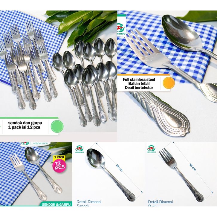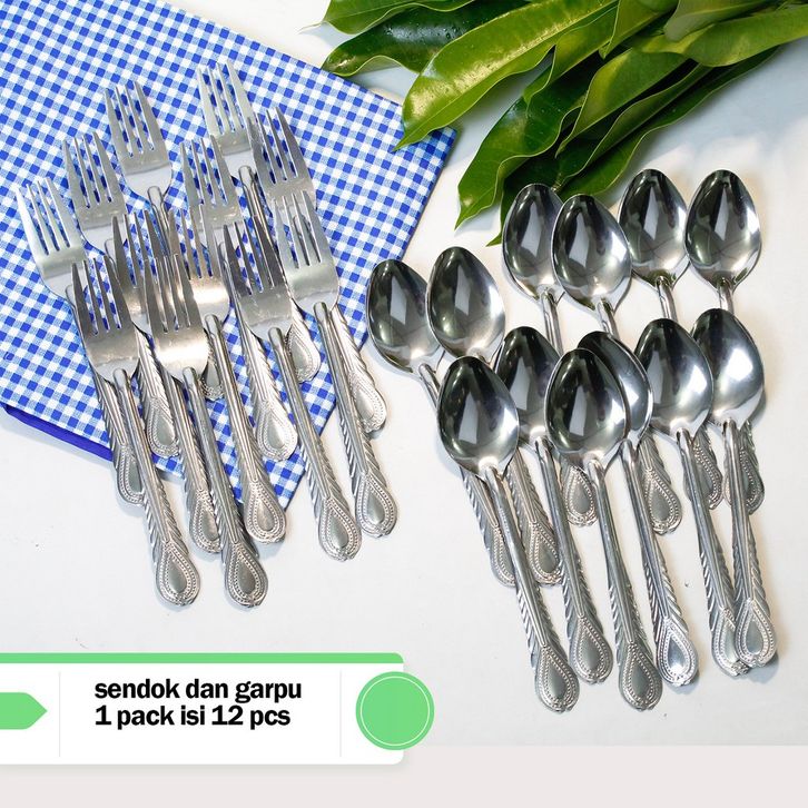 Promo Bebehome 12 Pcs Sendok dan Garpu Stainless Steel Bahan Tebal Modern Style