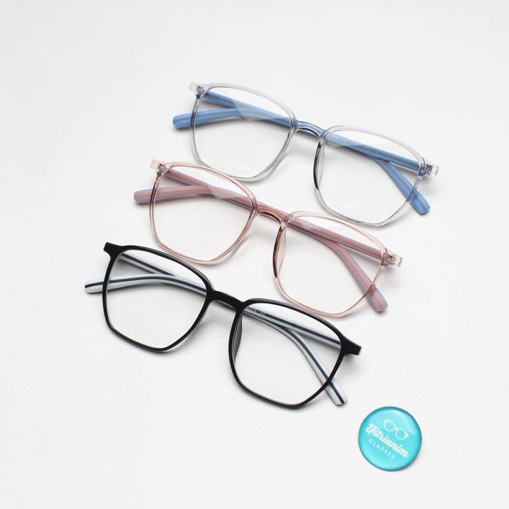 Kacamata Kotak Mines Pria Wanita 2318 (-0.25 s/d -16.00) Lensa Antiradiasi Photocromic Bluecromic