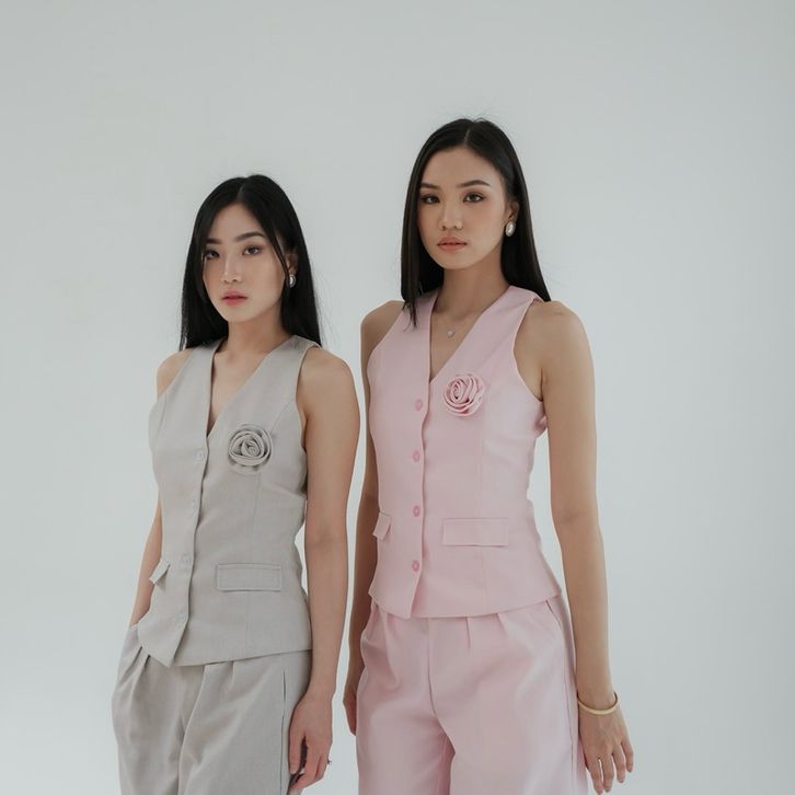 Azalea Rose Brooch Top -- Ocha Wear | Vest Casual Top | Pakaian Atasan Wanita | Women Formal Tanktop