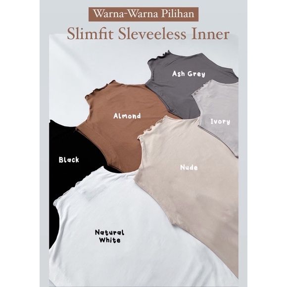 (Sleveeless) Almond, (Sleveeless) Ashgrey, (Sleveeless) Black, (Sleveeless) Ivory, (Sleveeless) Nude, (Sleveeless) White