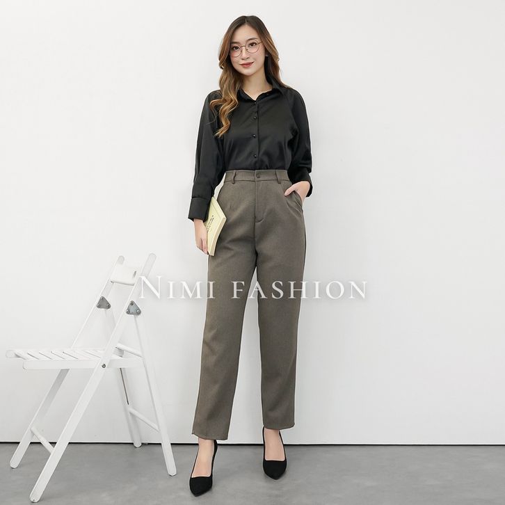 NIMI - Celana Bahan Kerja Wanita Pinggang Karet Belakang Celana Kantor Wanita Stretch Premium