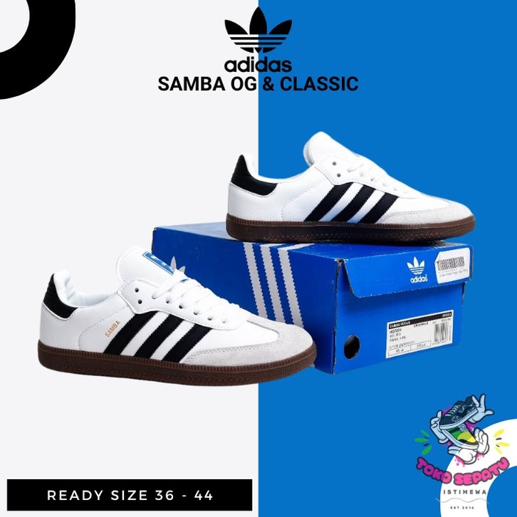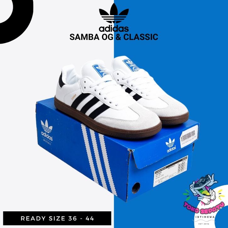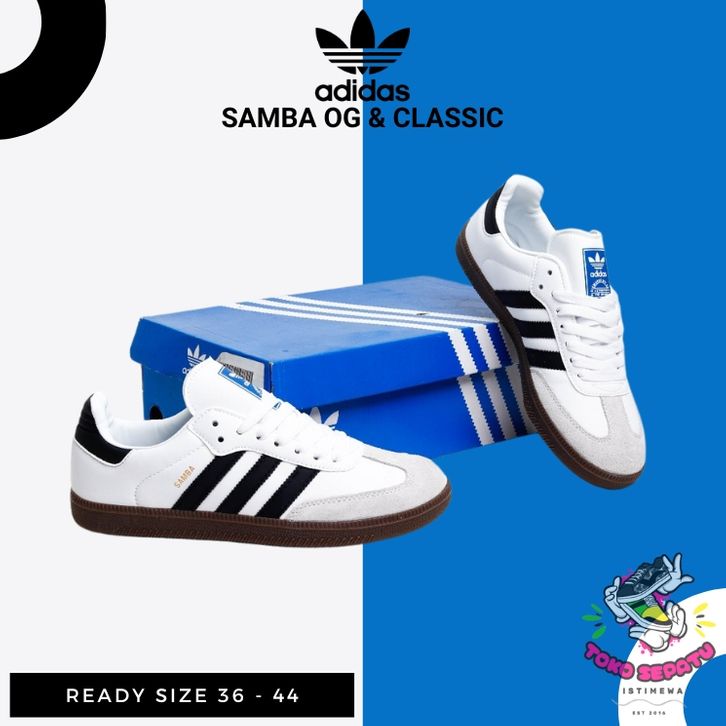 Sepatu Sneakers Pria Wanita Casual Adidas Samba OG Classic Putih List Hitam White Black Original Premium BNIB