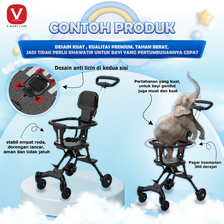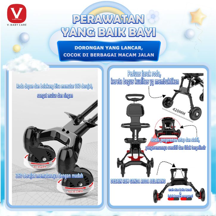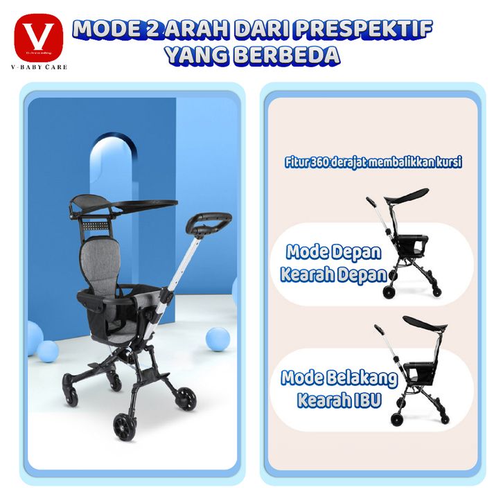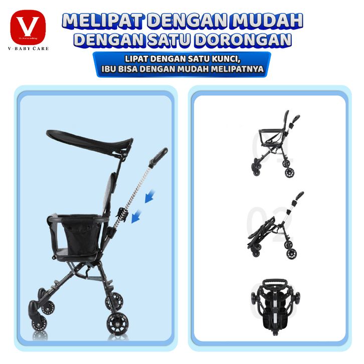 V-BABYCARE /Stroller Baby /Kereta Dorong Balita Lipat Magic Stroller Baby 2 Way Travel / VBABY-Q1 Sepeda motor dapat dib