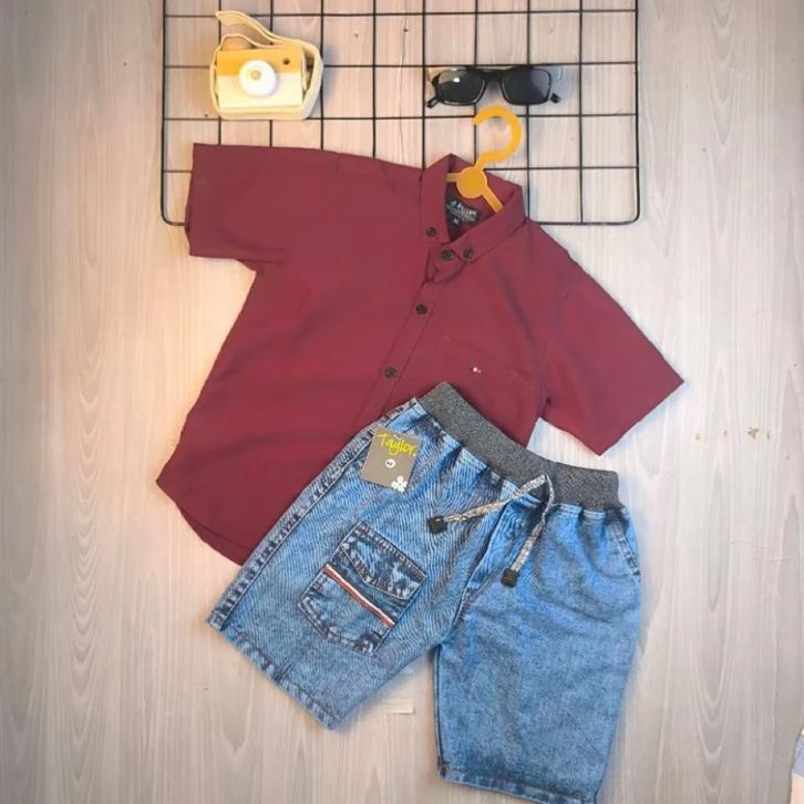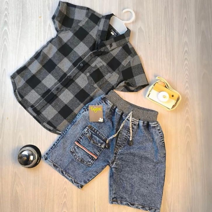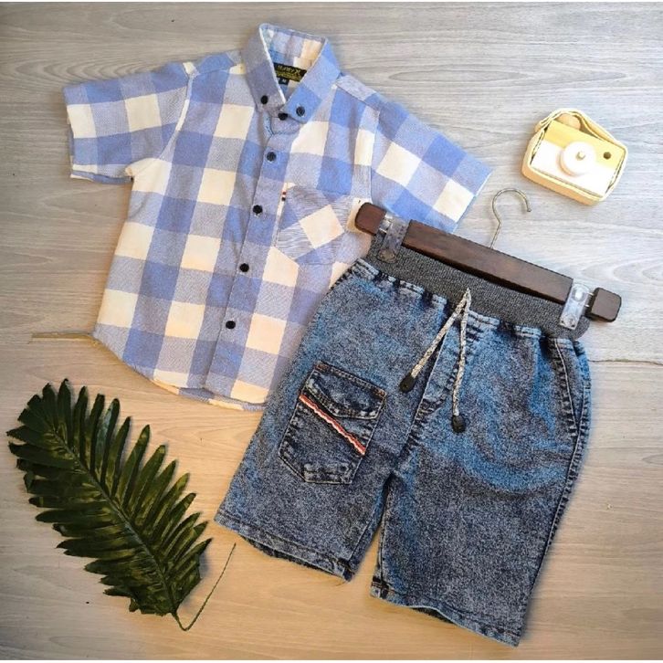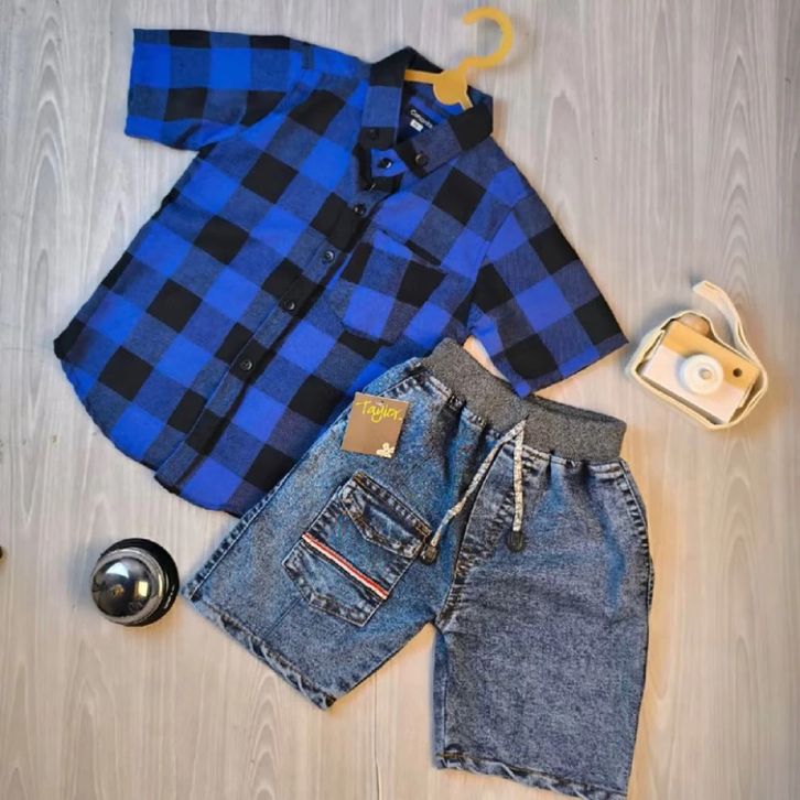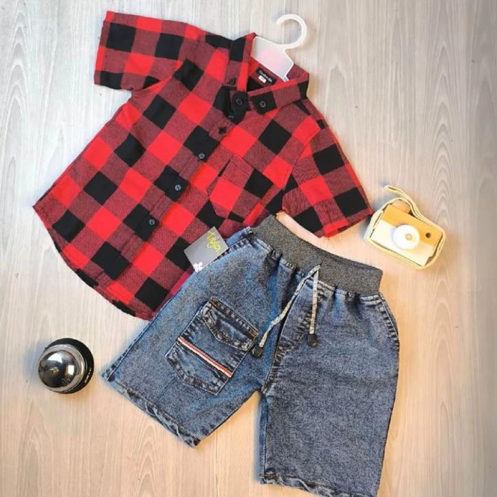 Setelan Kemeja Flanel Kotak-kotak Set Baju Anak Laki Laki 1-9 Tahun Pakaian Anak Cowok Terbaru Set Anak Cowok Termurah
