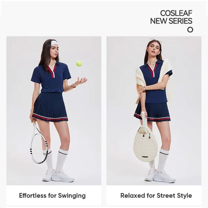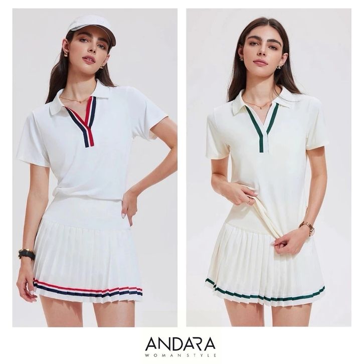 Set Rok Olahraga Wanita Tennis Golf Yoga Pilates Padel Baju Polo Top Lengan Pendek Stylish Outfit Olahraga Wanita