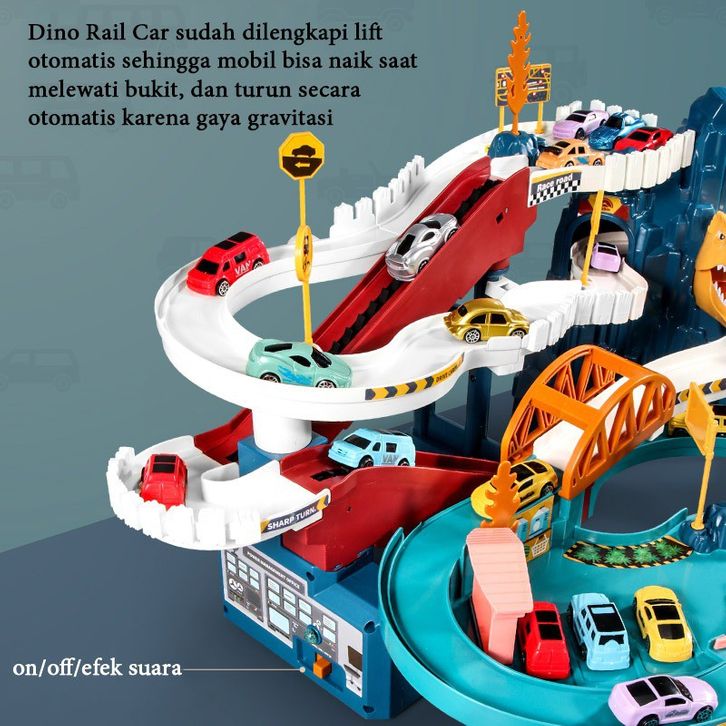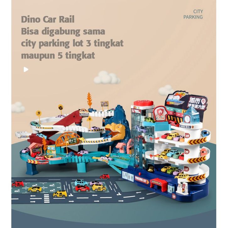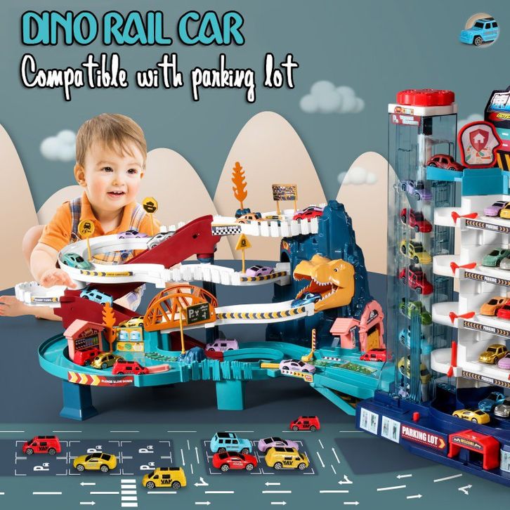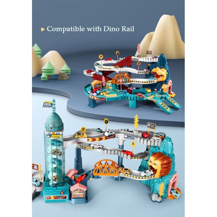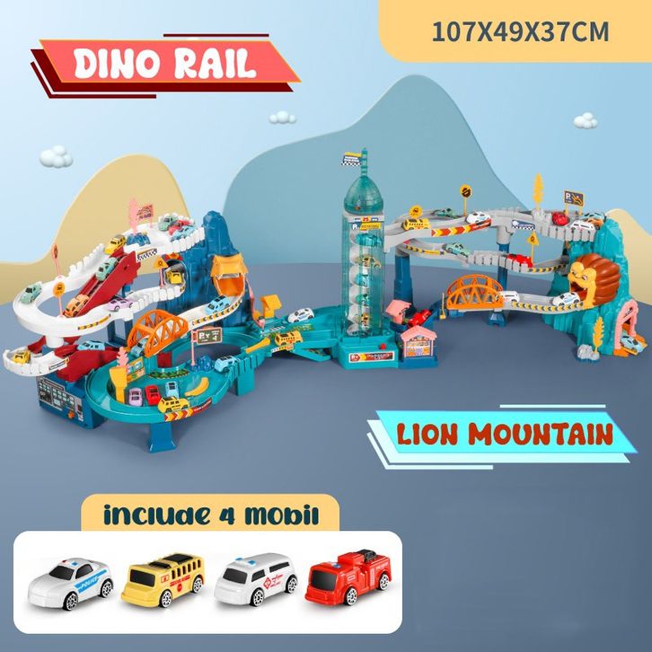 Mainan Anak Dinosour Rail Car Dino Rail Parking Lot Lion Mountain