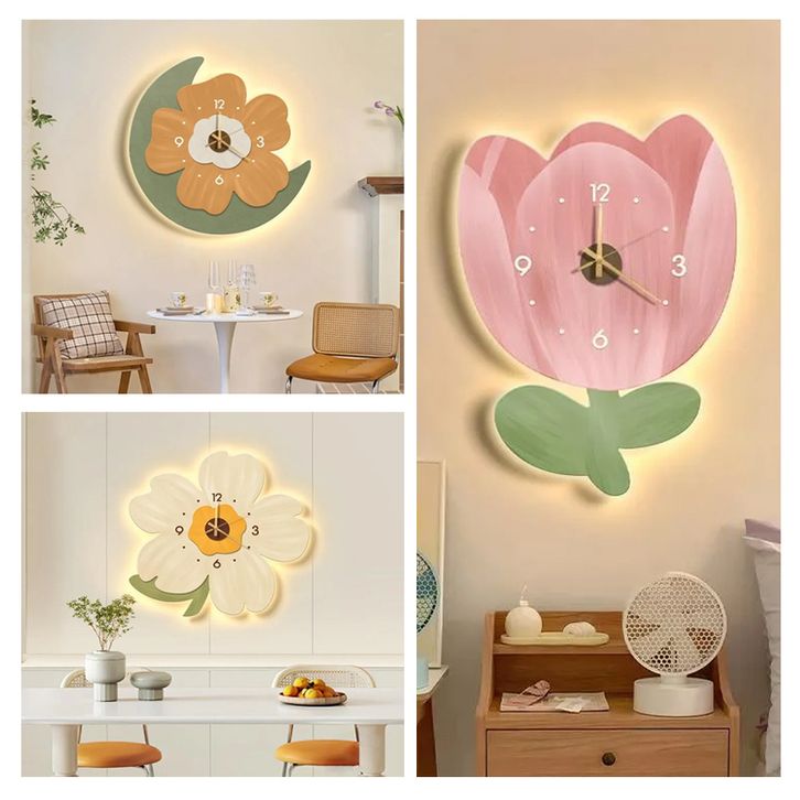 JAM DINDING AESTHETIC BUNGA BOHO AESTETIK LED